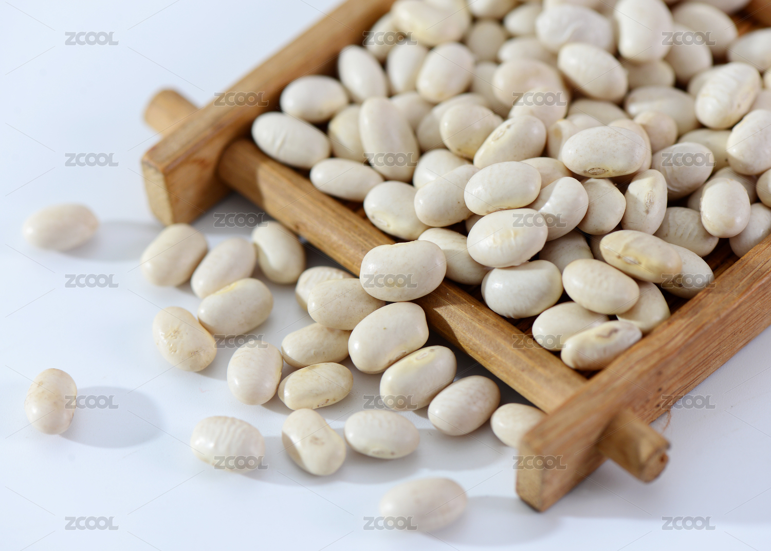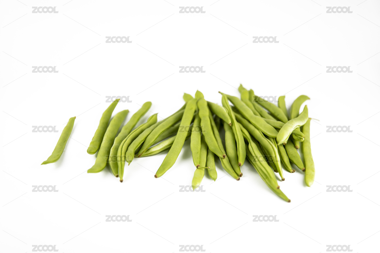 散乱堆叠在一起的新鲜芸豆,白色的背景