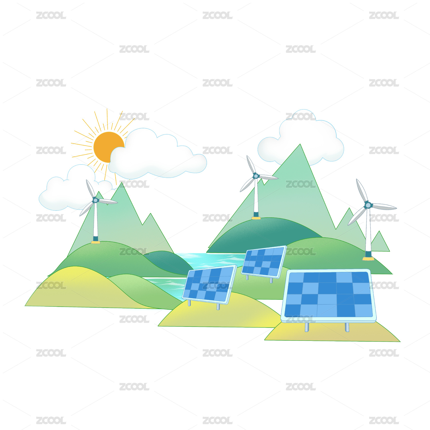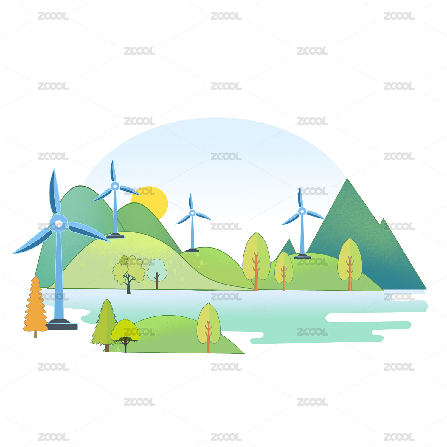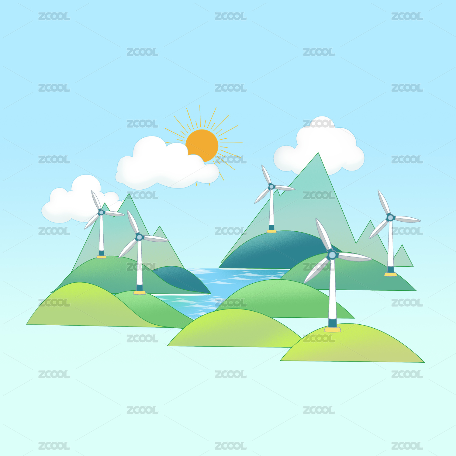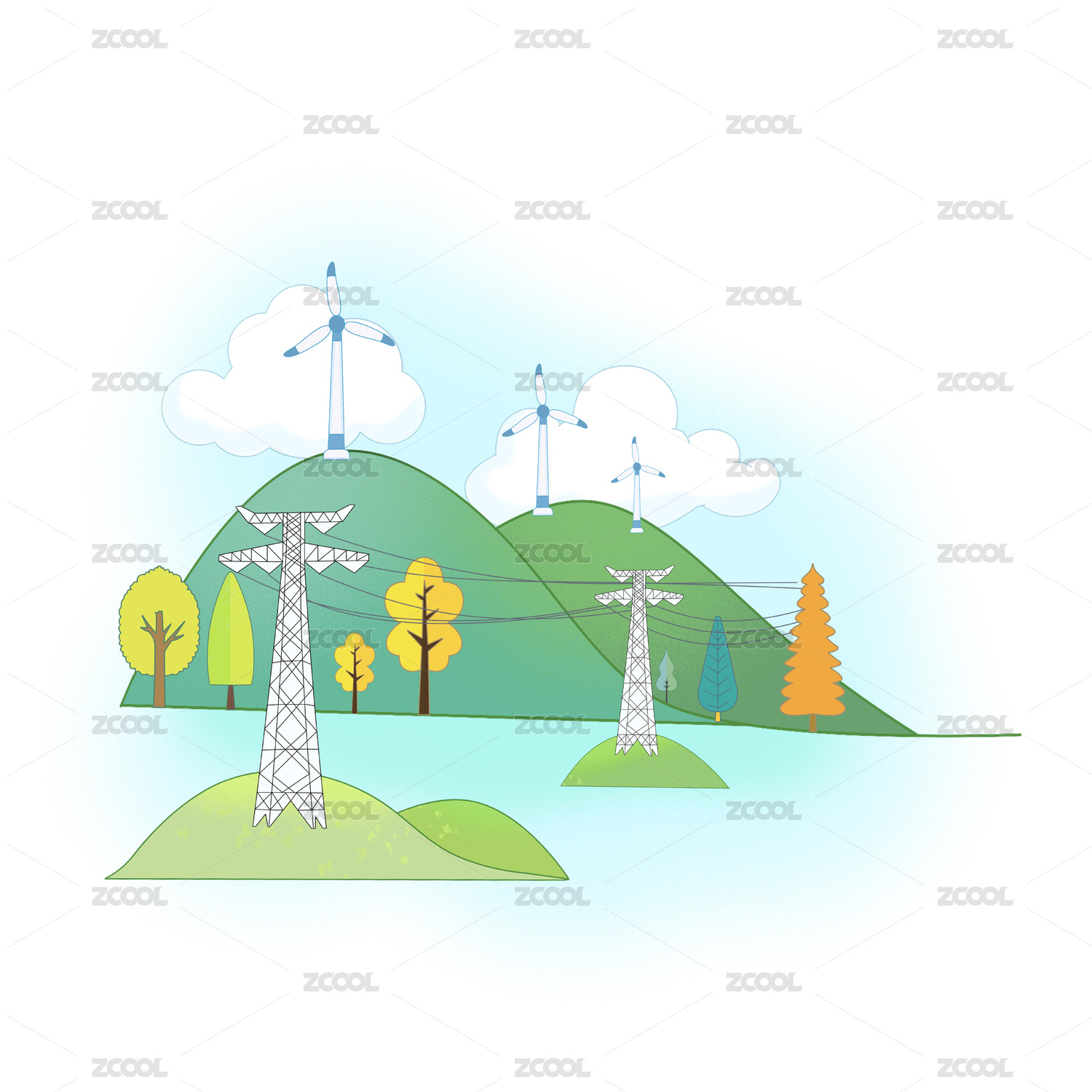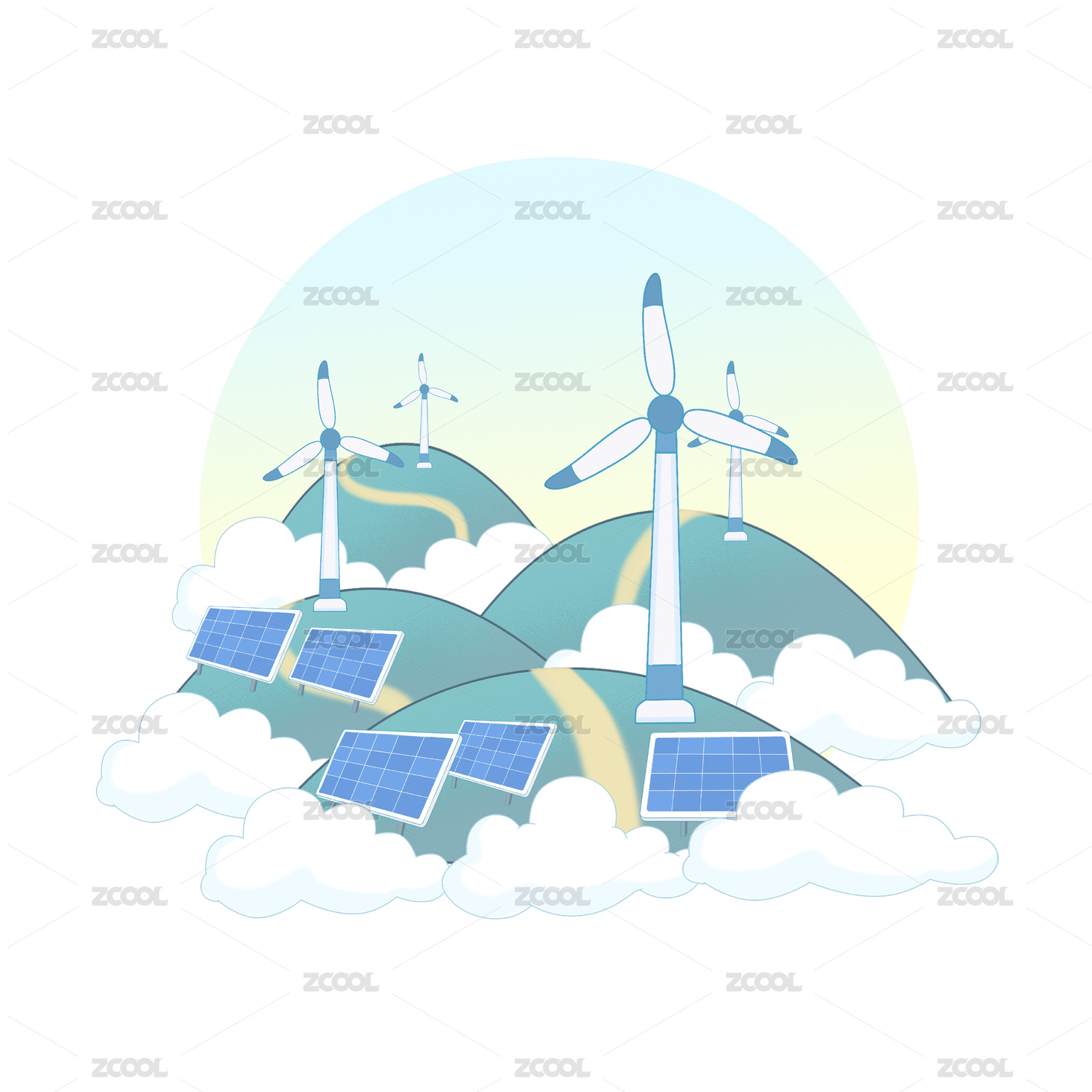 清洁能源插画风力发电