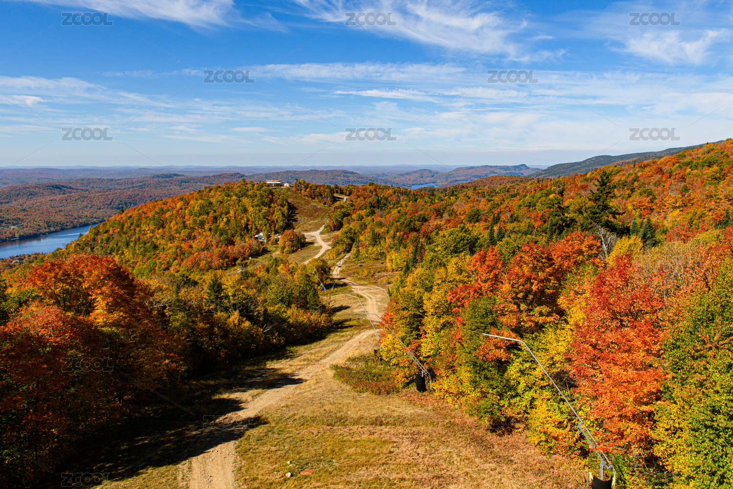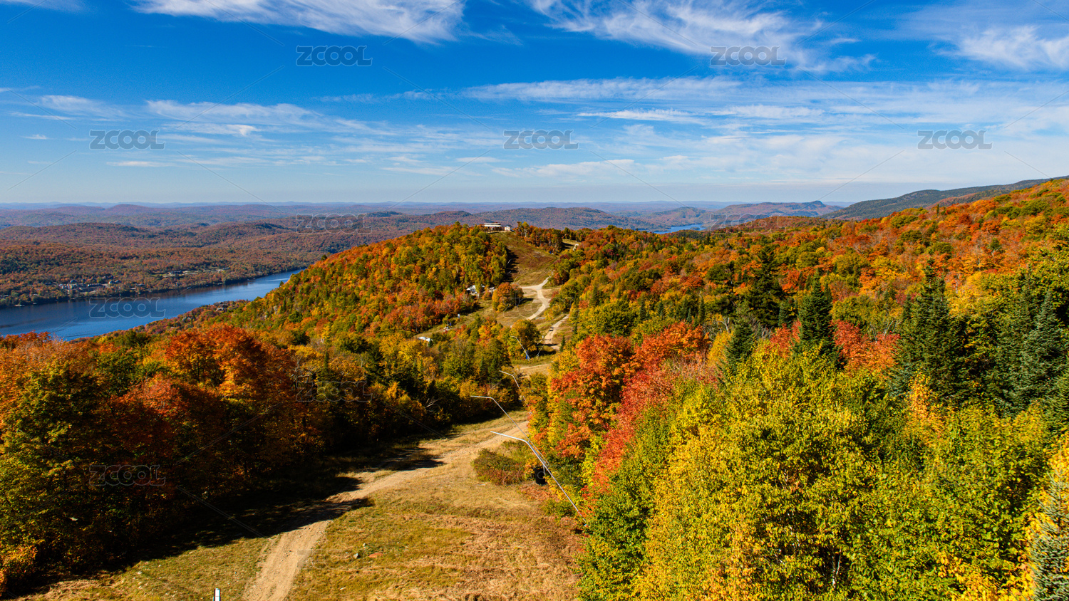 缆车俯瞰翠湖山庄秋色:红黄林海与蜿蜒小路