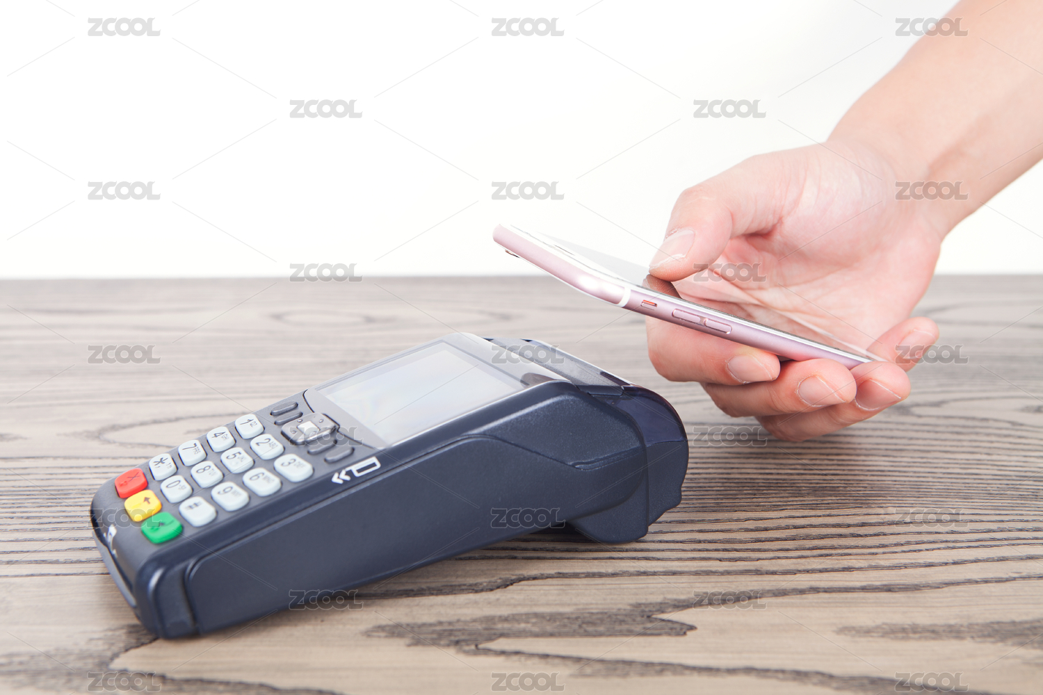 黑色背景中一只手拿着手机另一只手拿着银行卡