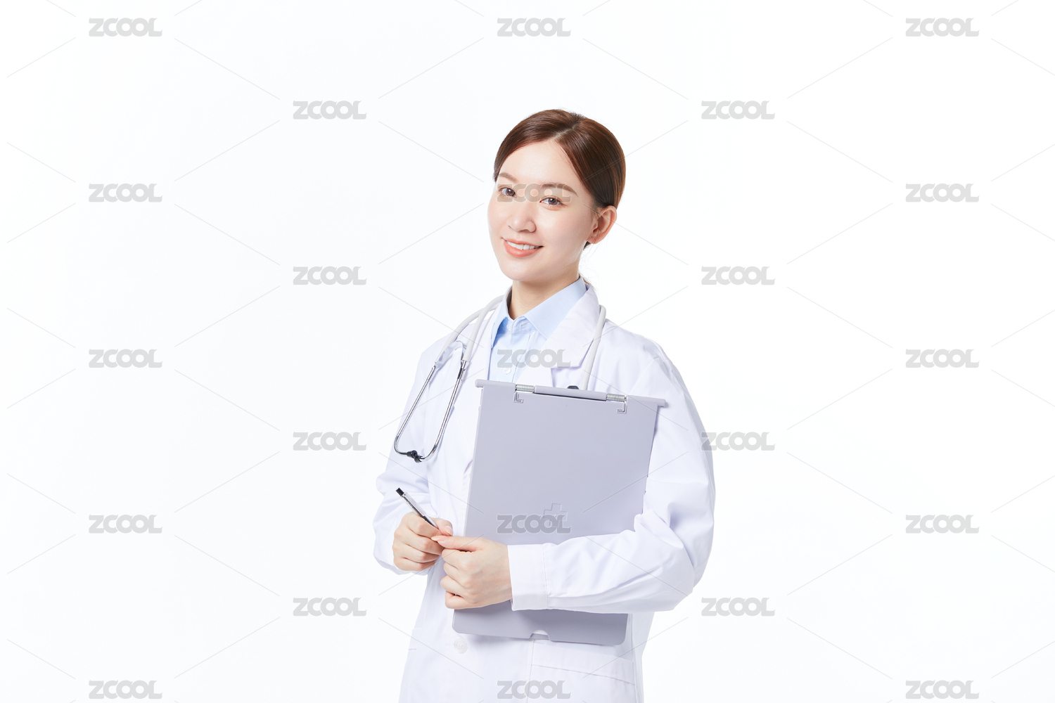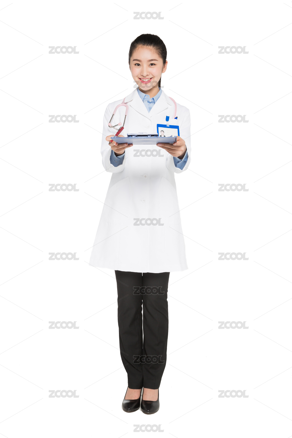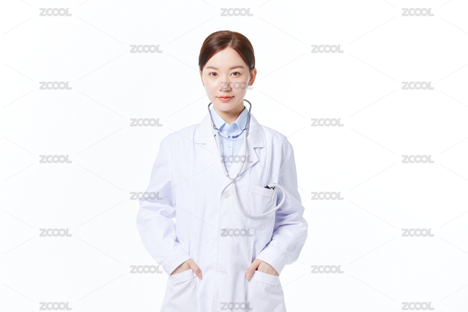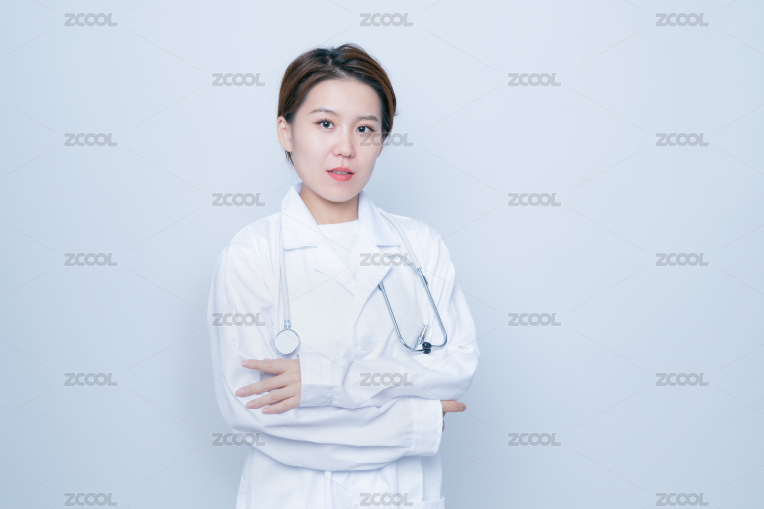 影棚拍摄青年女医生形象。年轻女大夫肖像