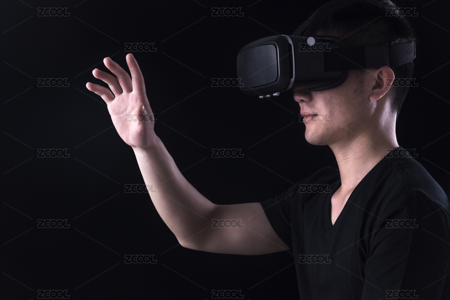 中国的亚洲女孩室内设计师是在三维可视化,而在创意办公工作室的办公桌在惊讶的VR设备,因为立体效果。职业和职务侵占的概念。