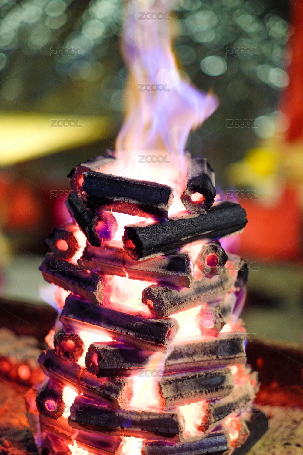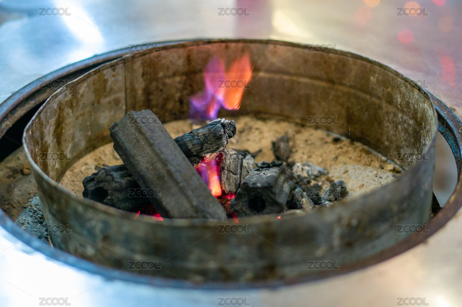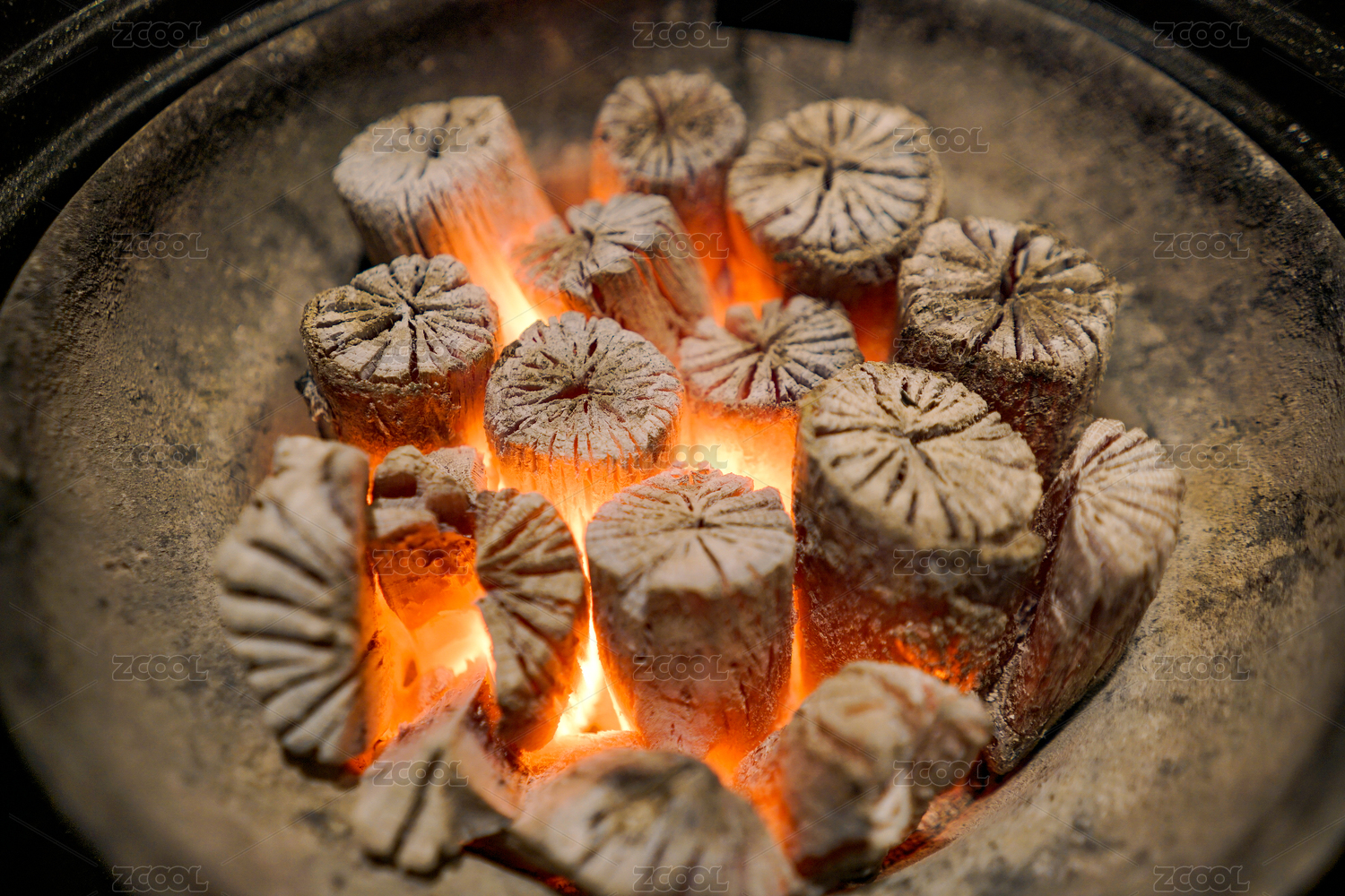 烤炉里烧红的菊花炭