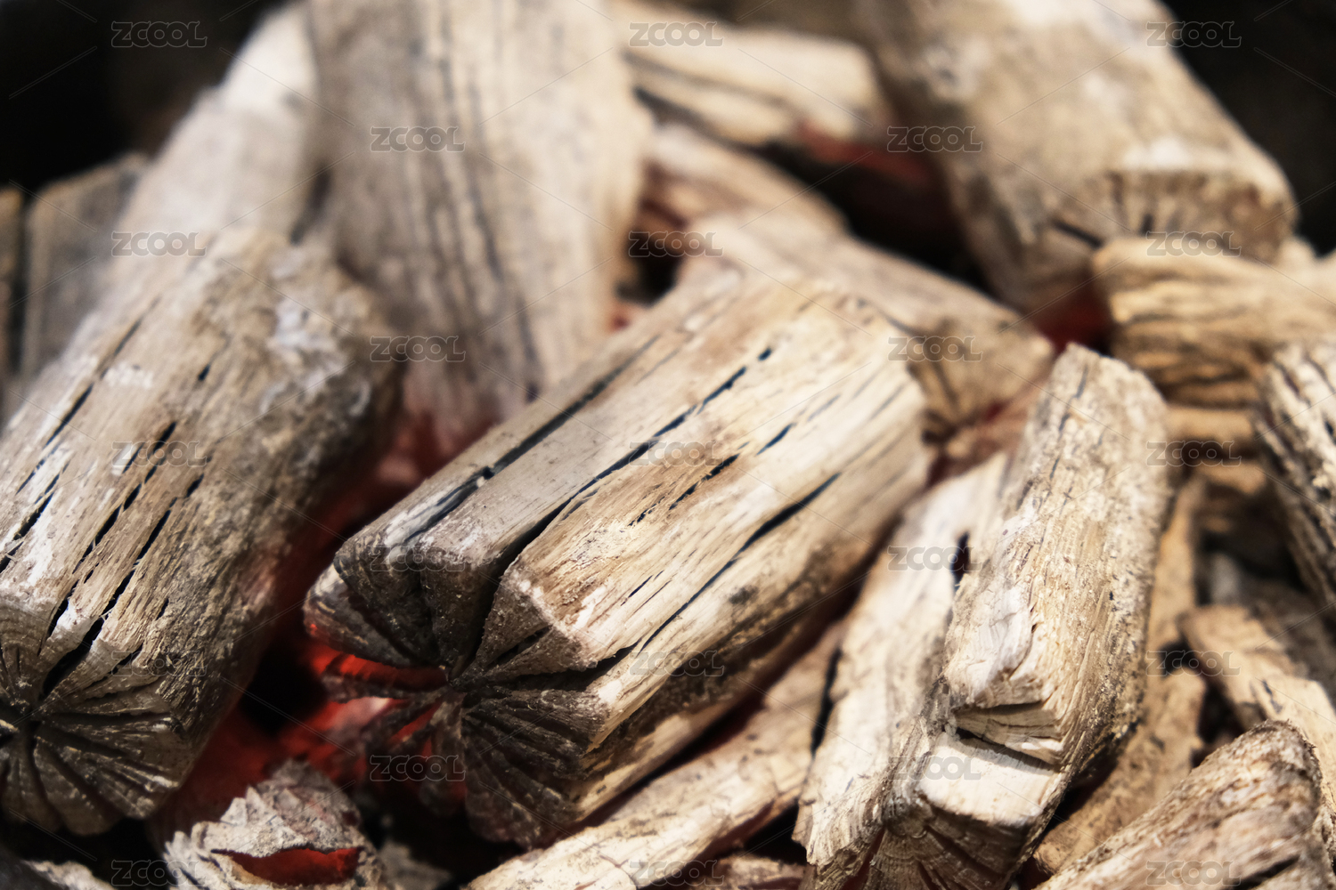 很多木炭堆放在一起