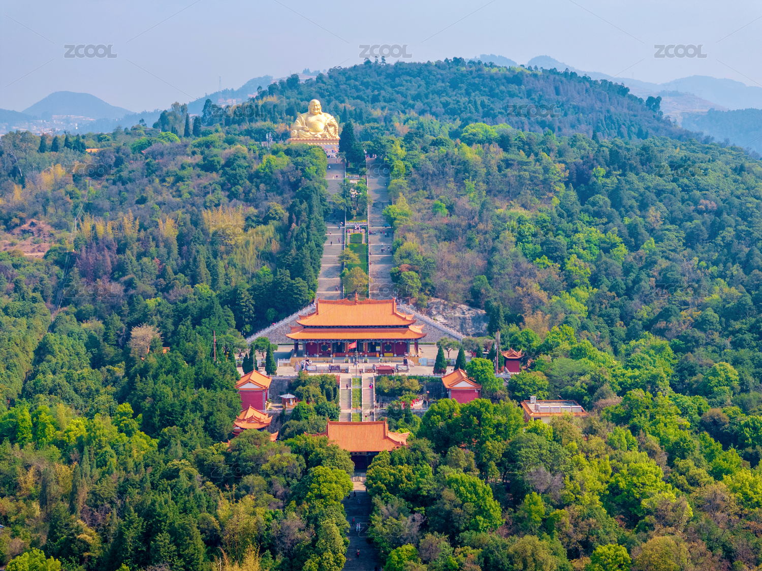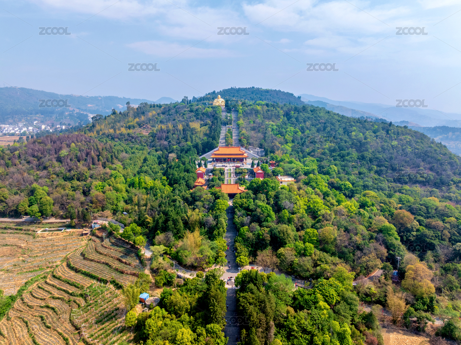 中国云南红河弥勒锦屏山弥勒寺航拍风光