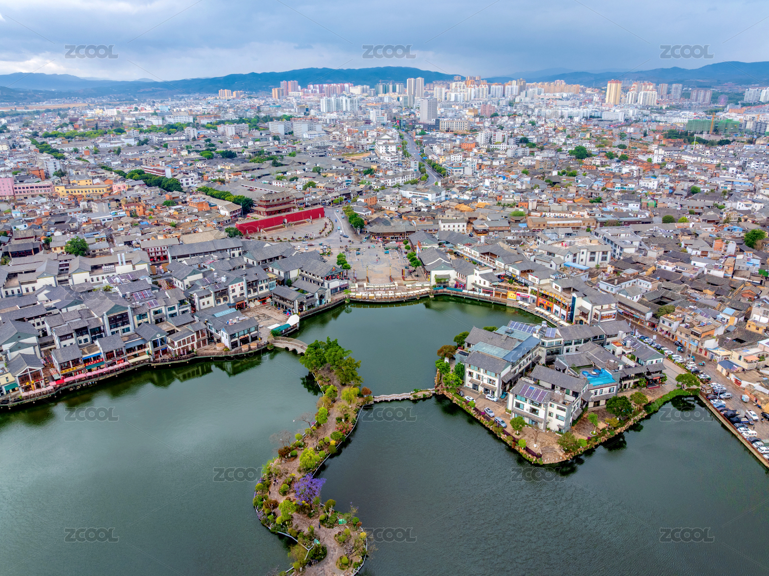 中国云南红河建水古城朝阳楼外小桂湖航拍