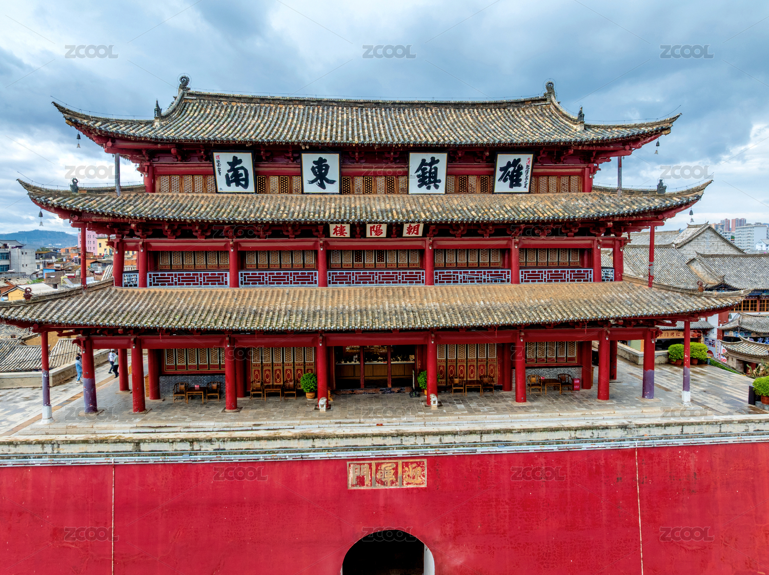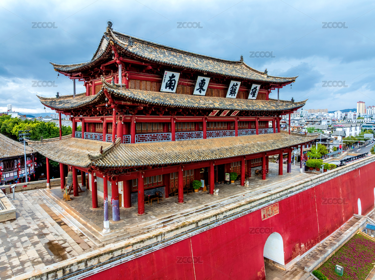 中国云南红河建水古城朝阳楼航拍风光
