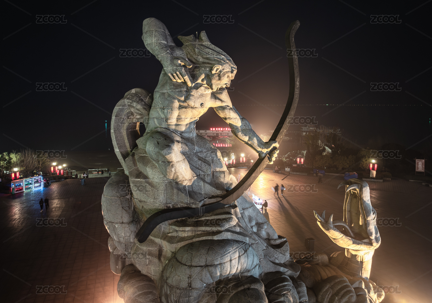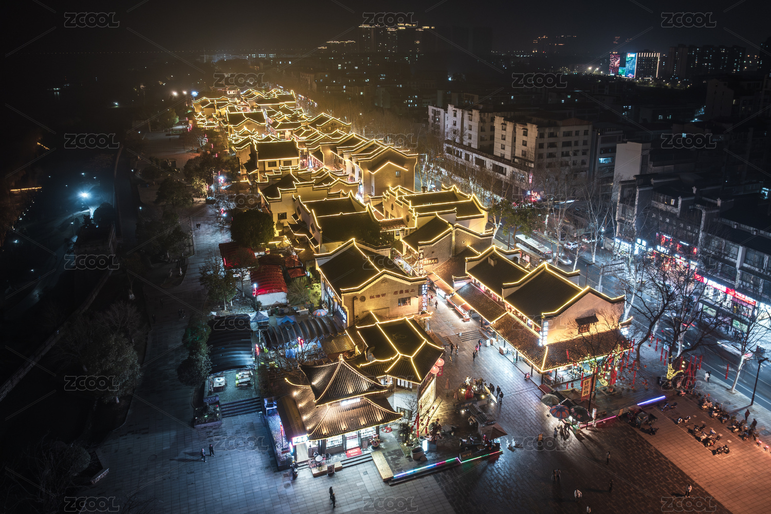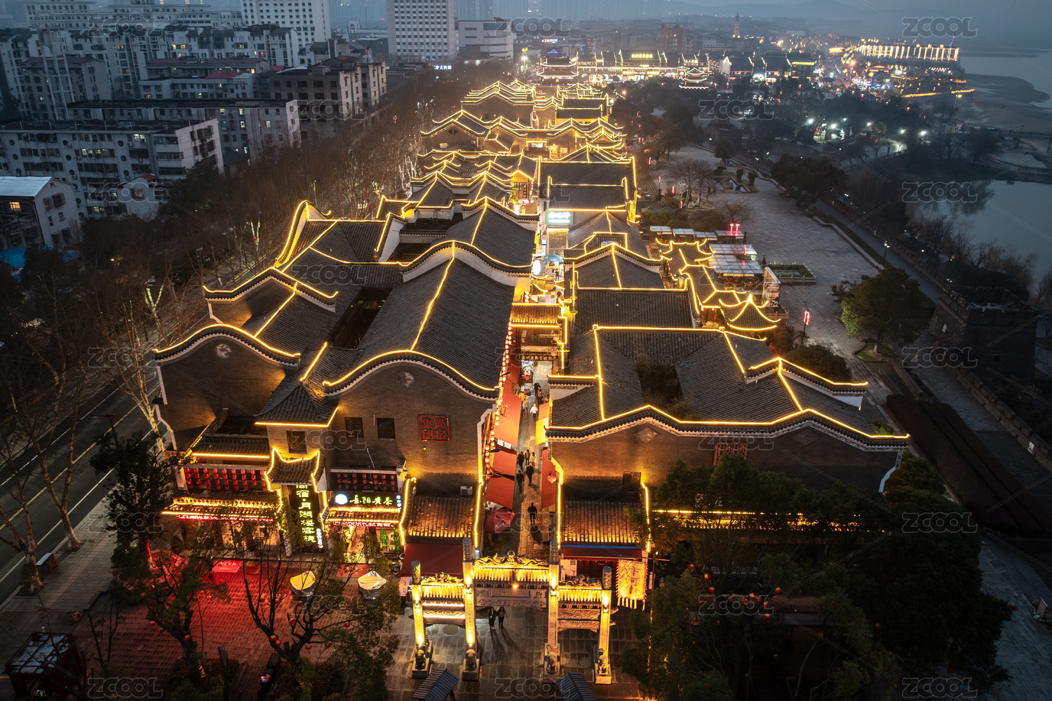 湖南岳阳市巴陵广场汴河街广场城市夜景风光