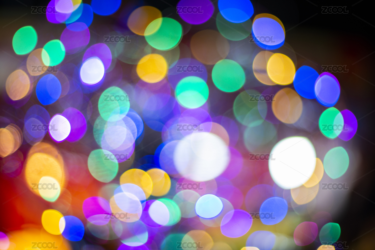 夜晚气球上的彩灯形成五颜六色的抽象失焦点的光斑