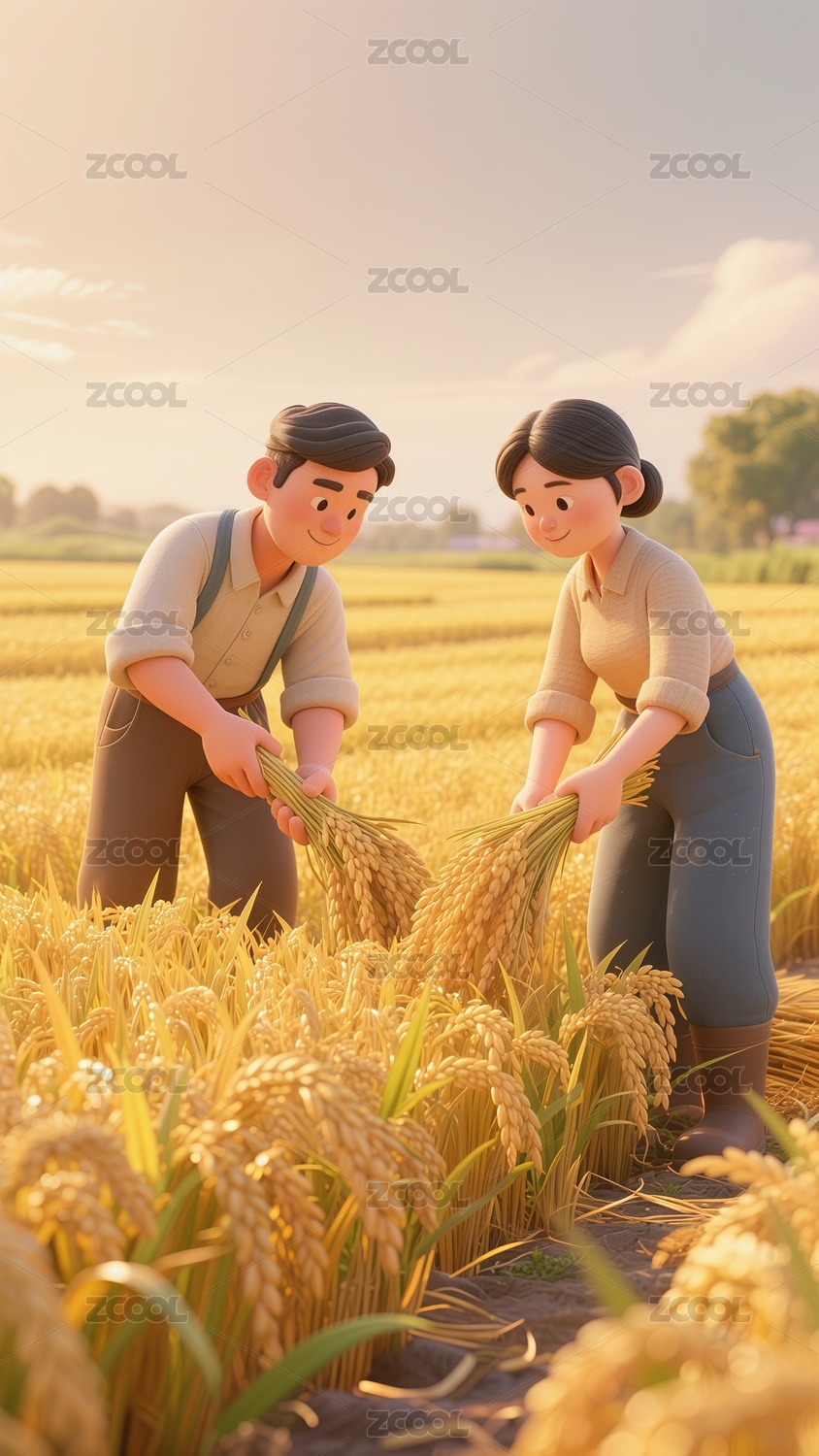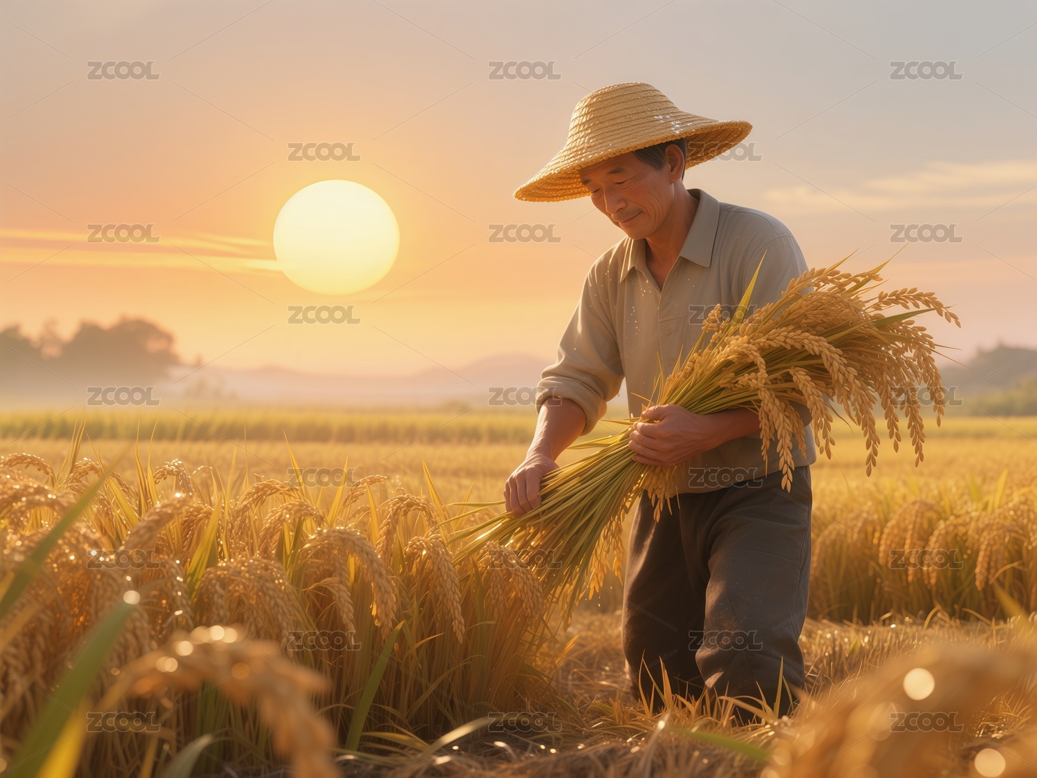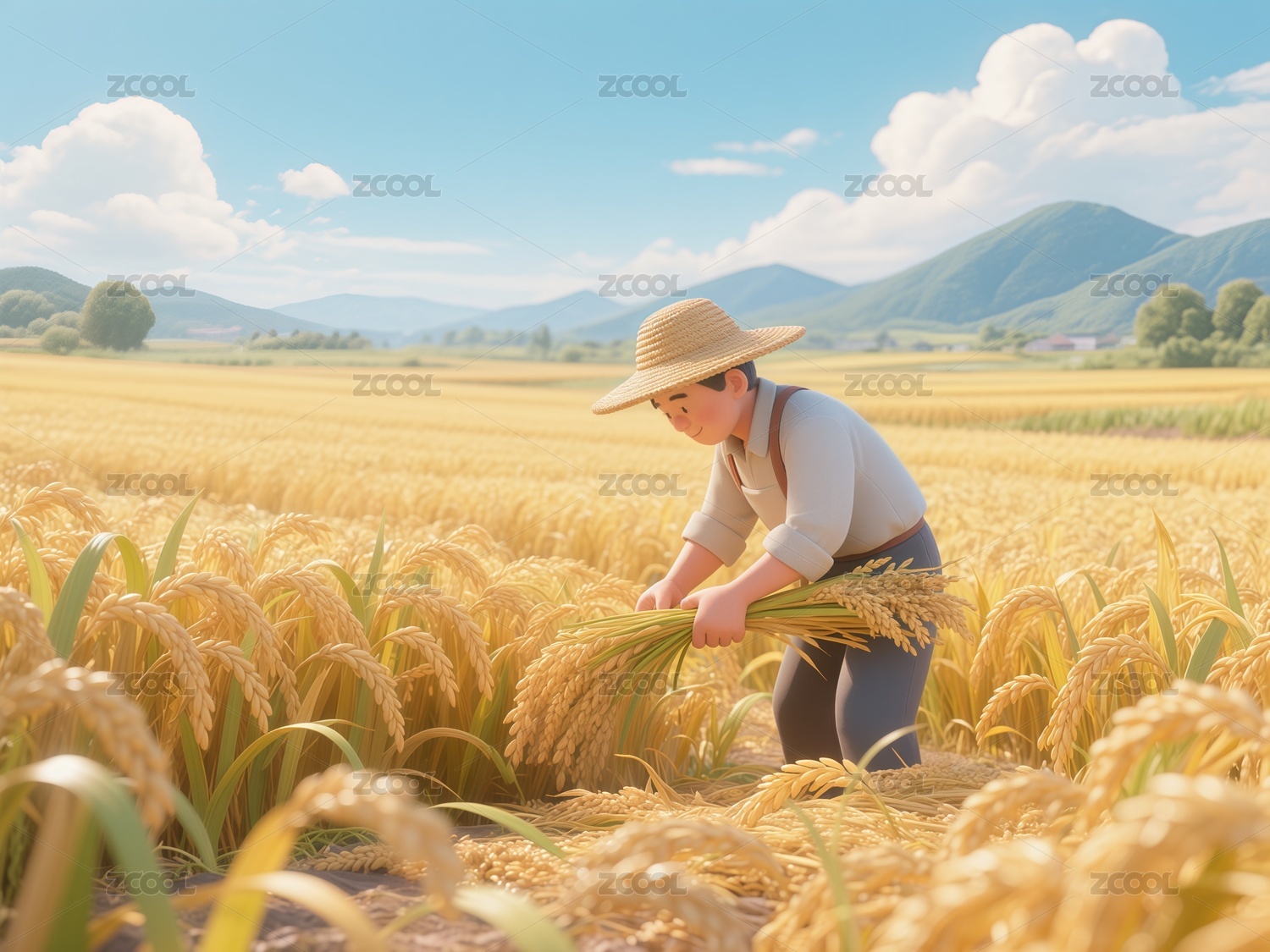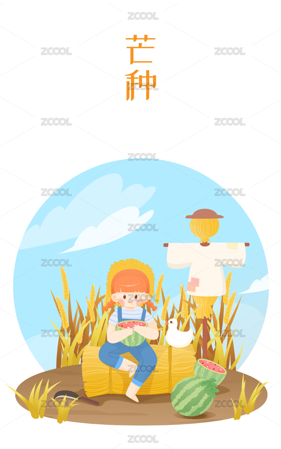 芒种小女孩在麦子地里劳作累了吃西瓜