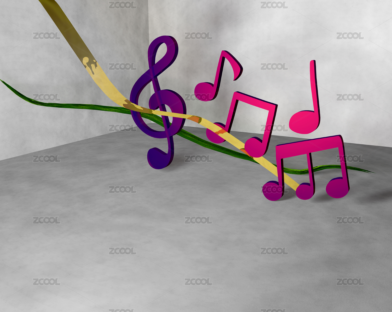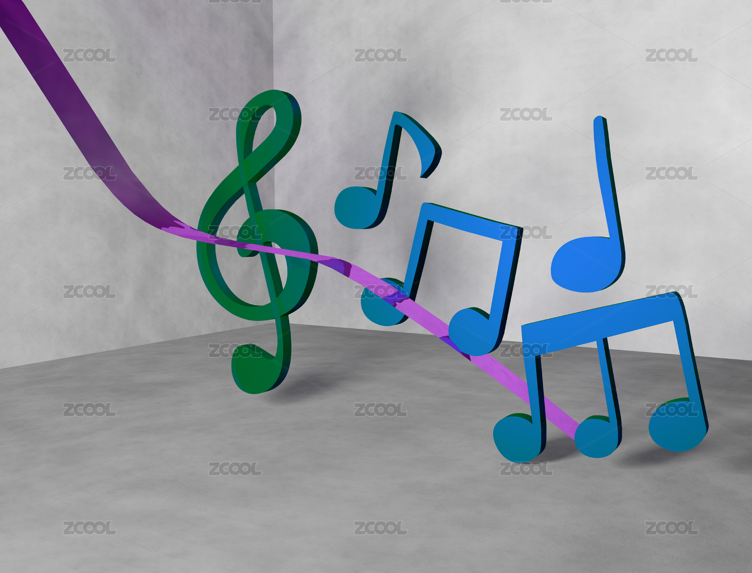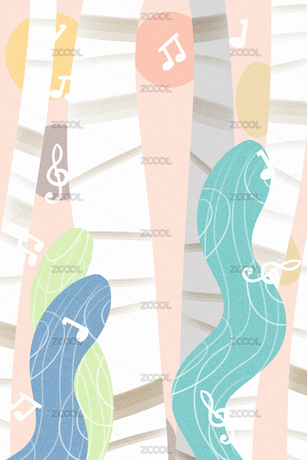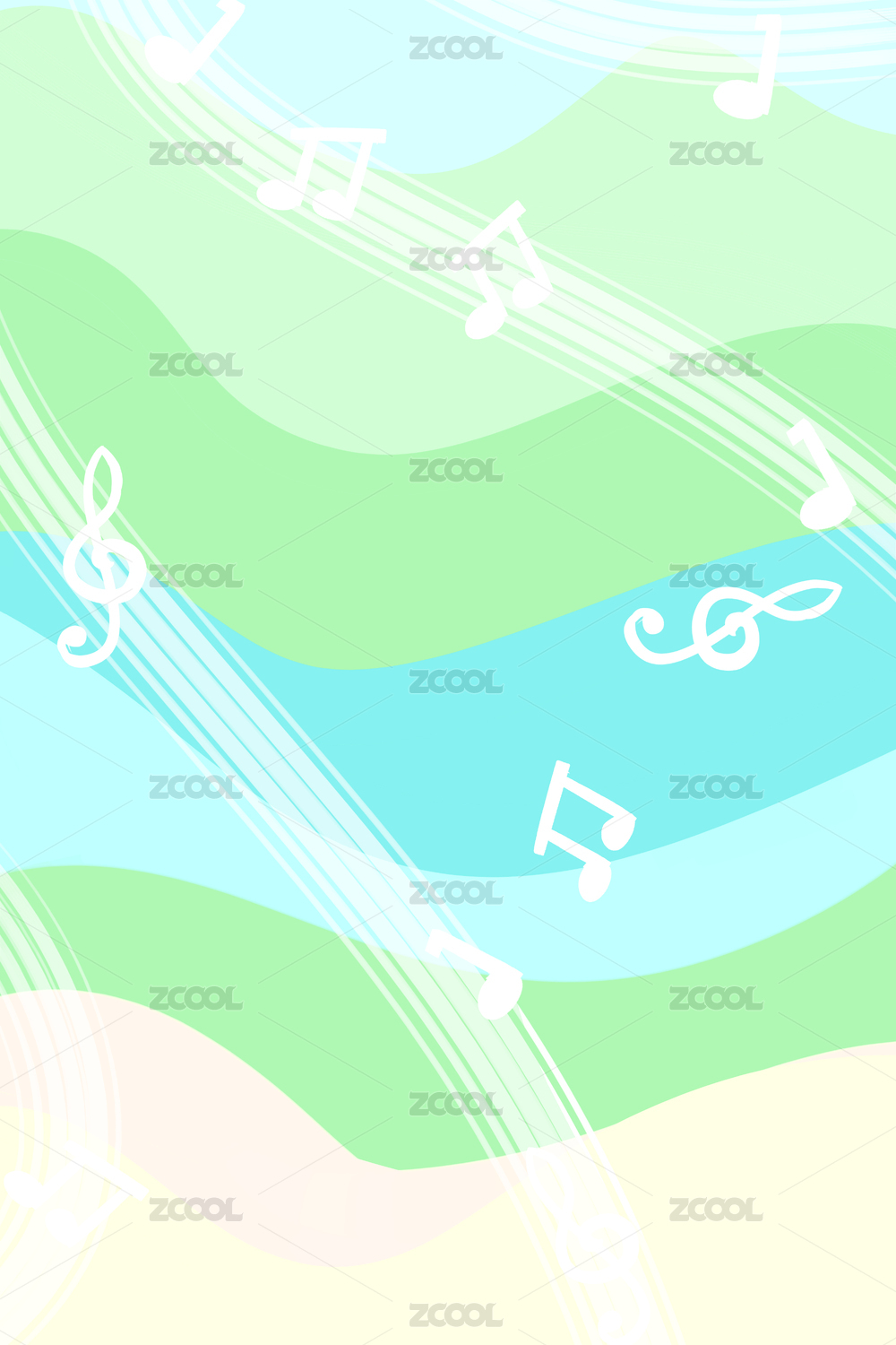 小清新风格音乐符号绿色的波纹条纹插画背景