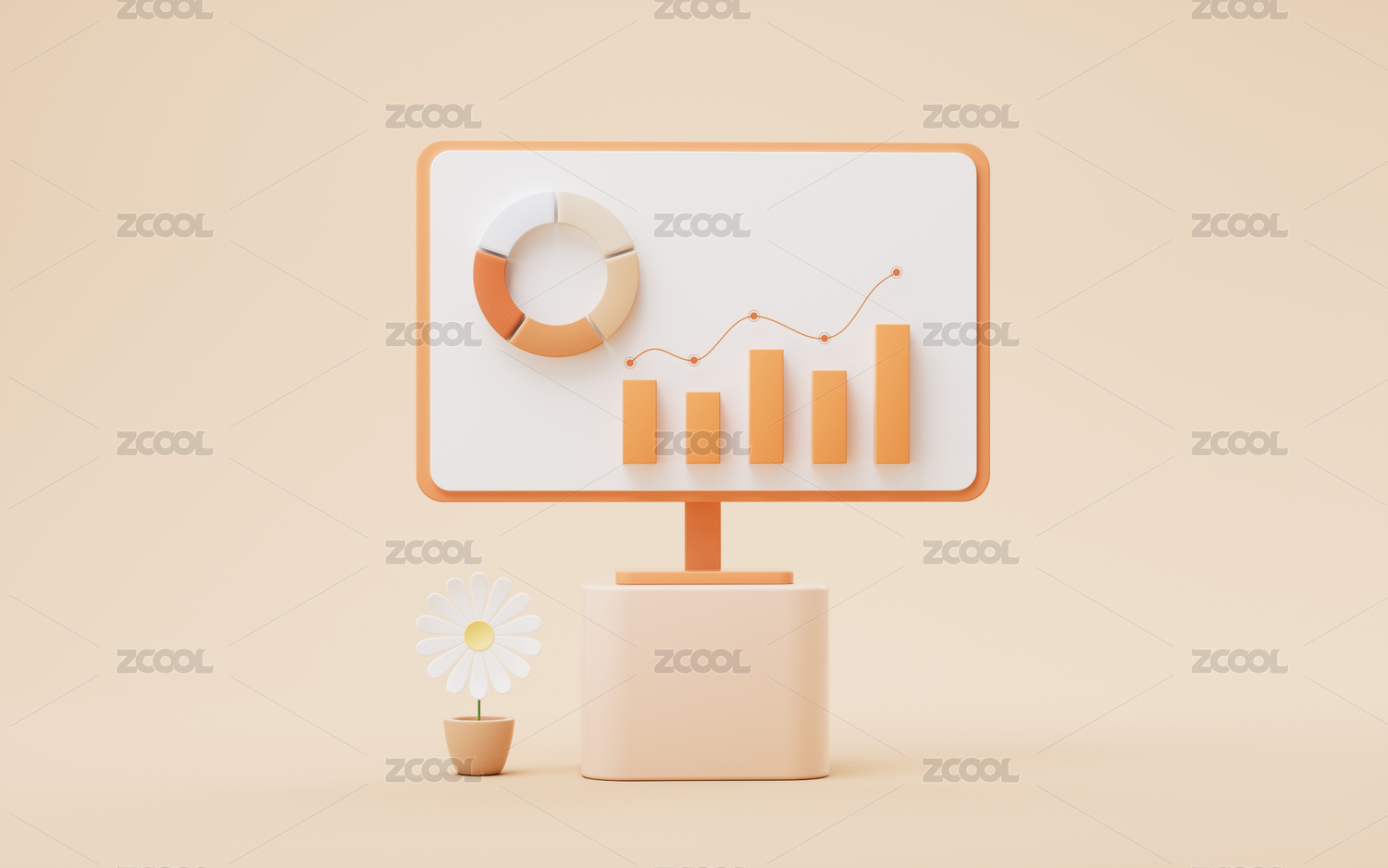卡通风格电脑屏幕与报表3D渲染