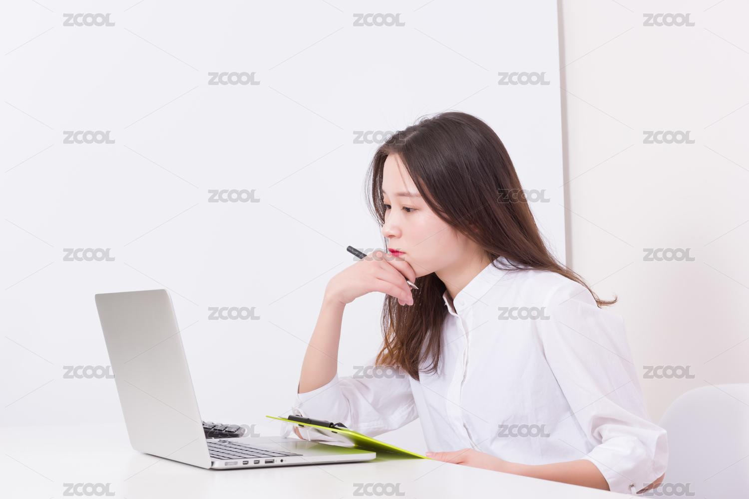 遇到问题的女性白领,对着电脑屏幕发呆