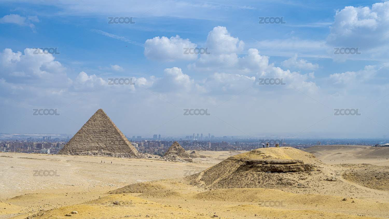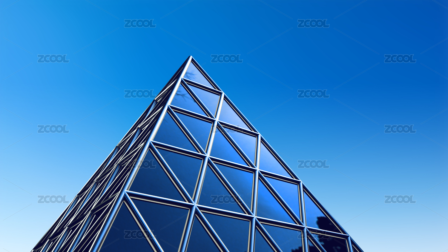 蓝色天空下户外的玻璃金字塔外形建筑反射天空