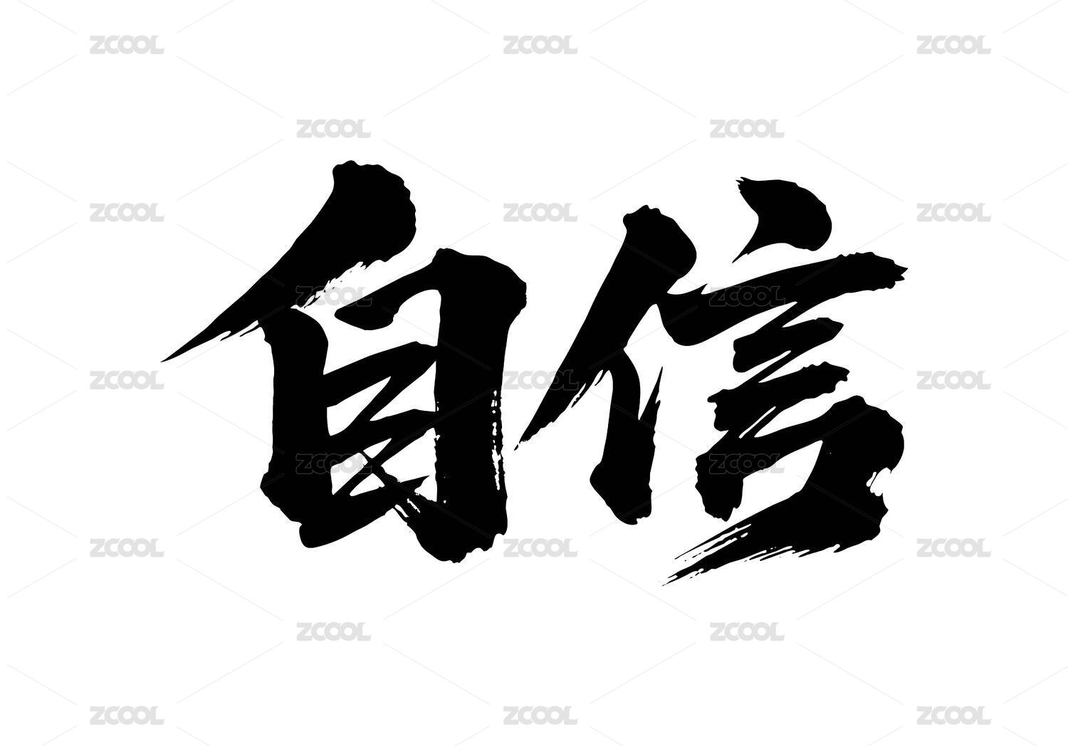 自信矢量书法手写毛笔字