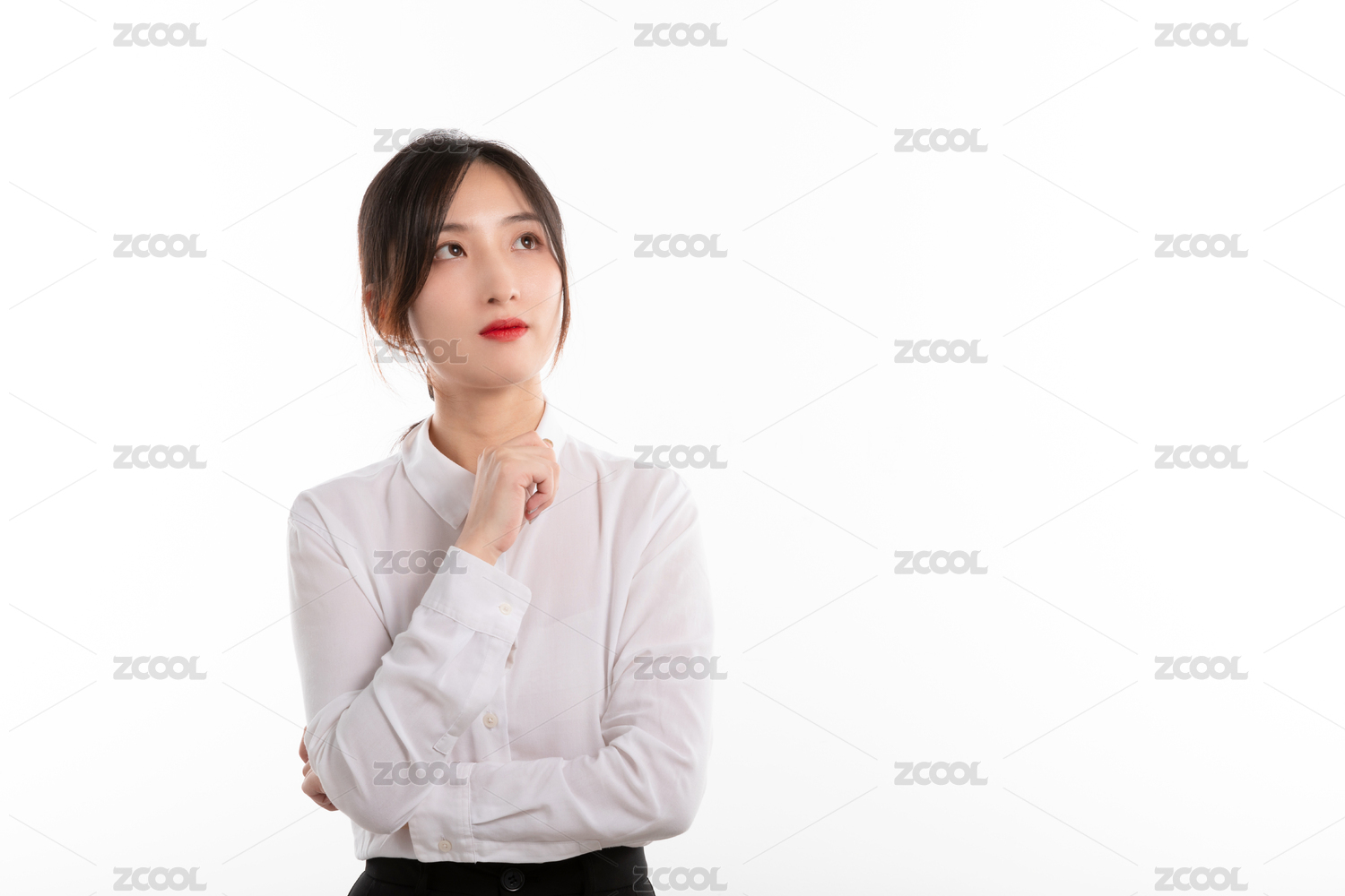 白色背景前充满自信的亚洲美女