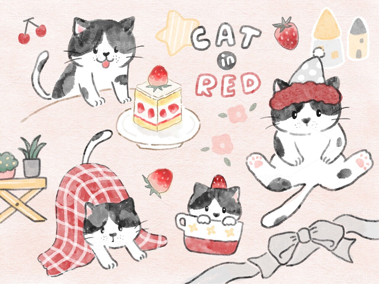 小黑咪和红草莓-卡通动物