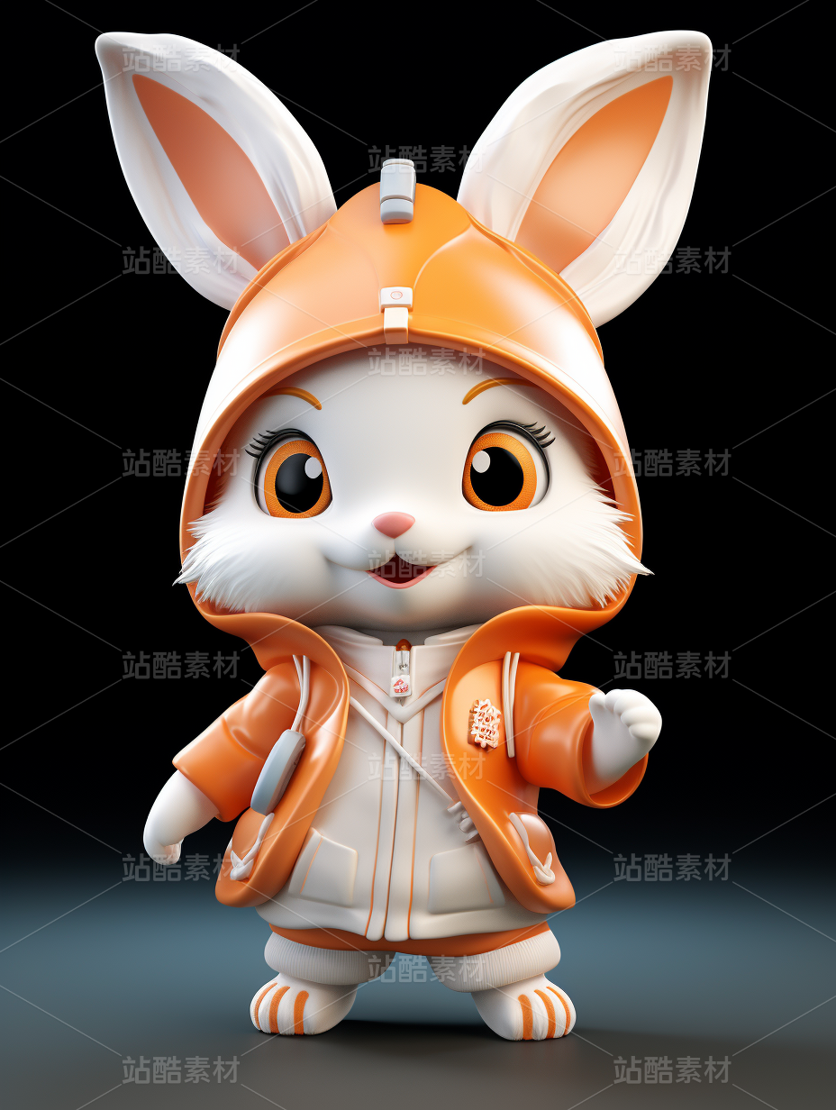 彩色3D卡通动物宠物兔子制服办公室橙色