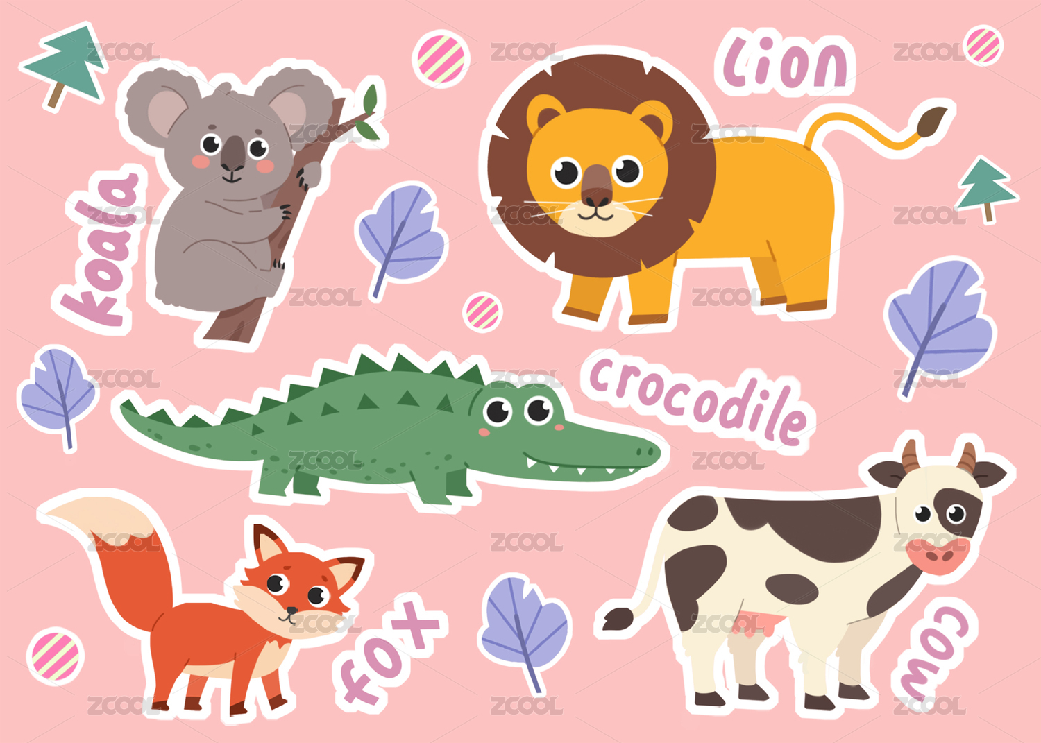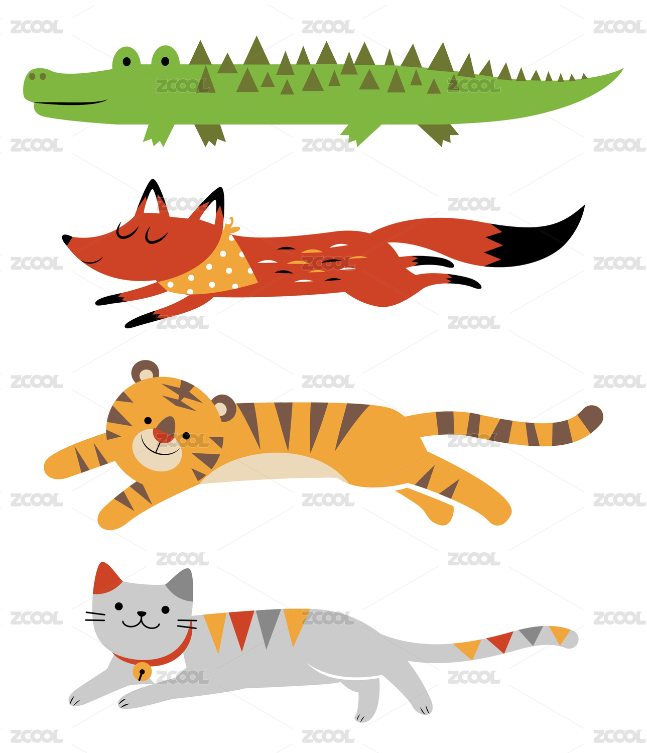 鳄鱼狐狸老虎猫卡通动物形象插画