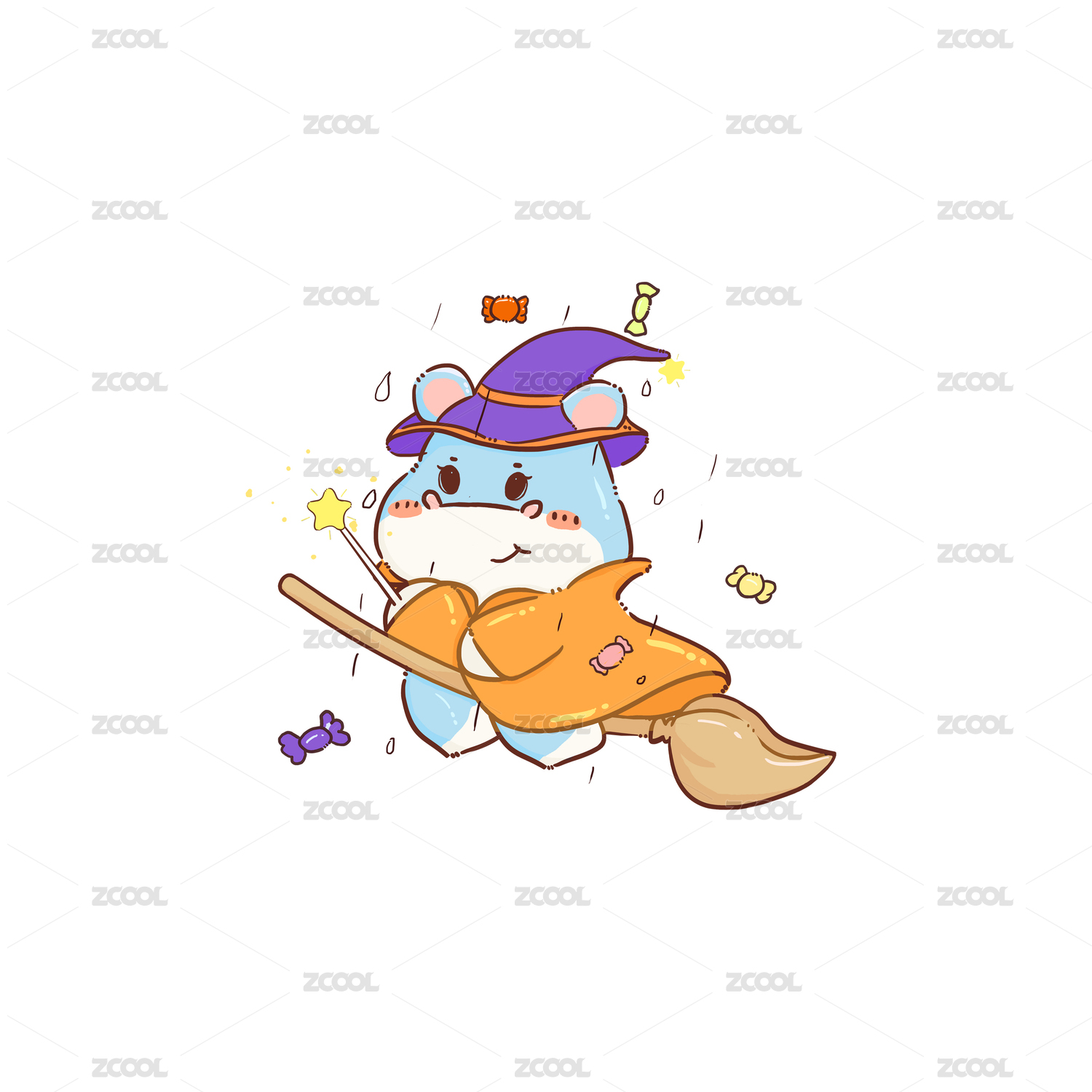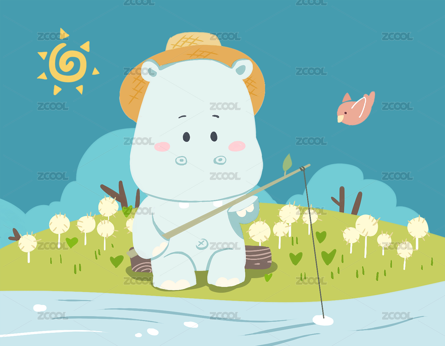 手绘卡通动物可爱小河马