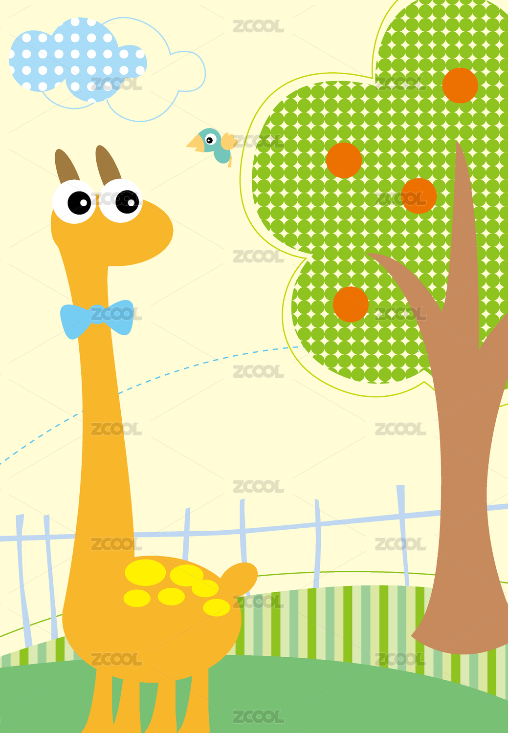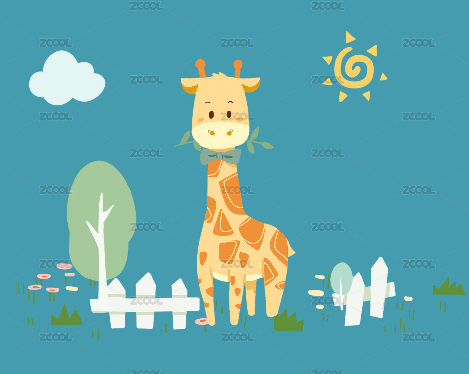 手绘卡通动物长颈鹿