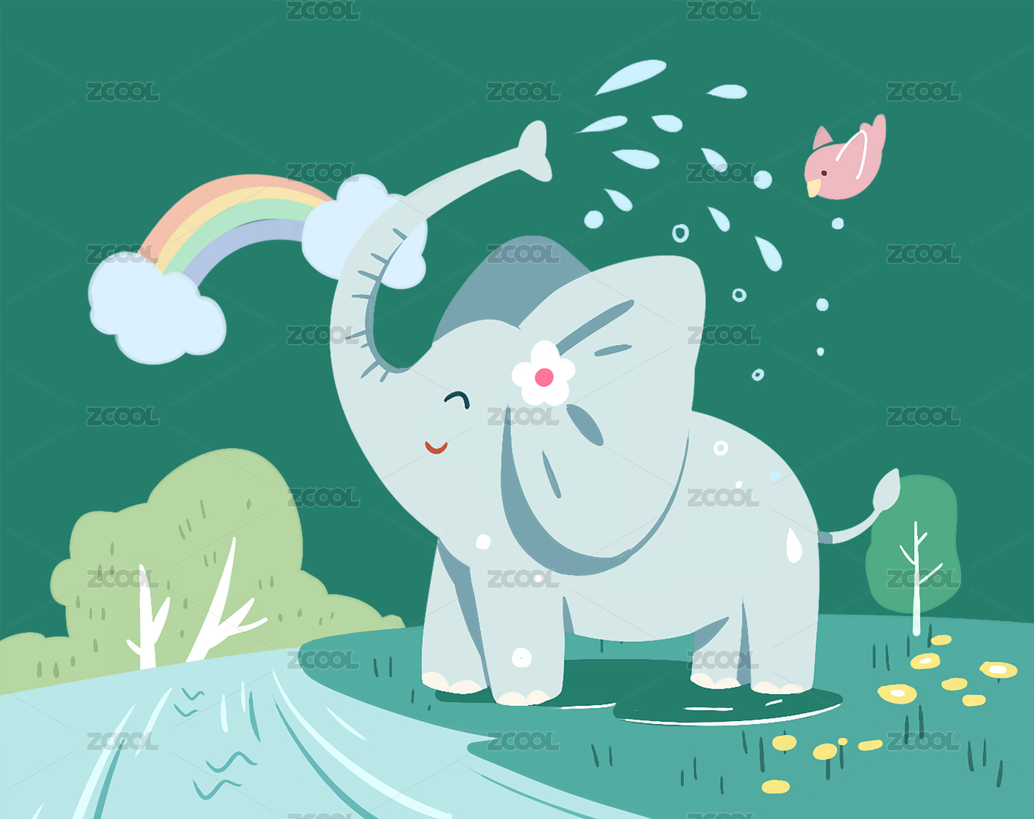 手绘卡通动物可爱的大象