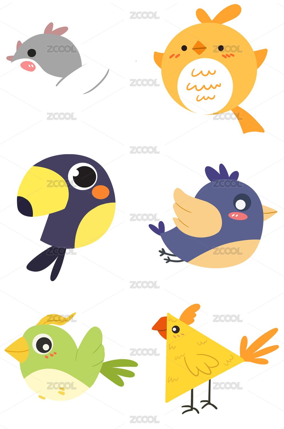 简笔画卡通动物小鸟元素组合