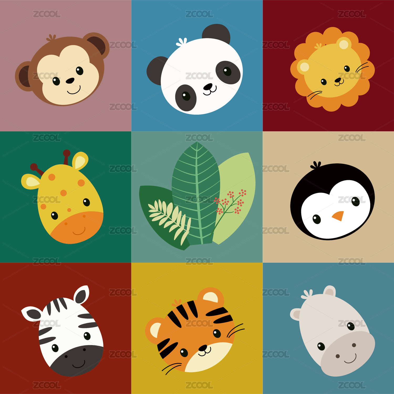 扁平化儿童卡通动物合集