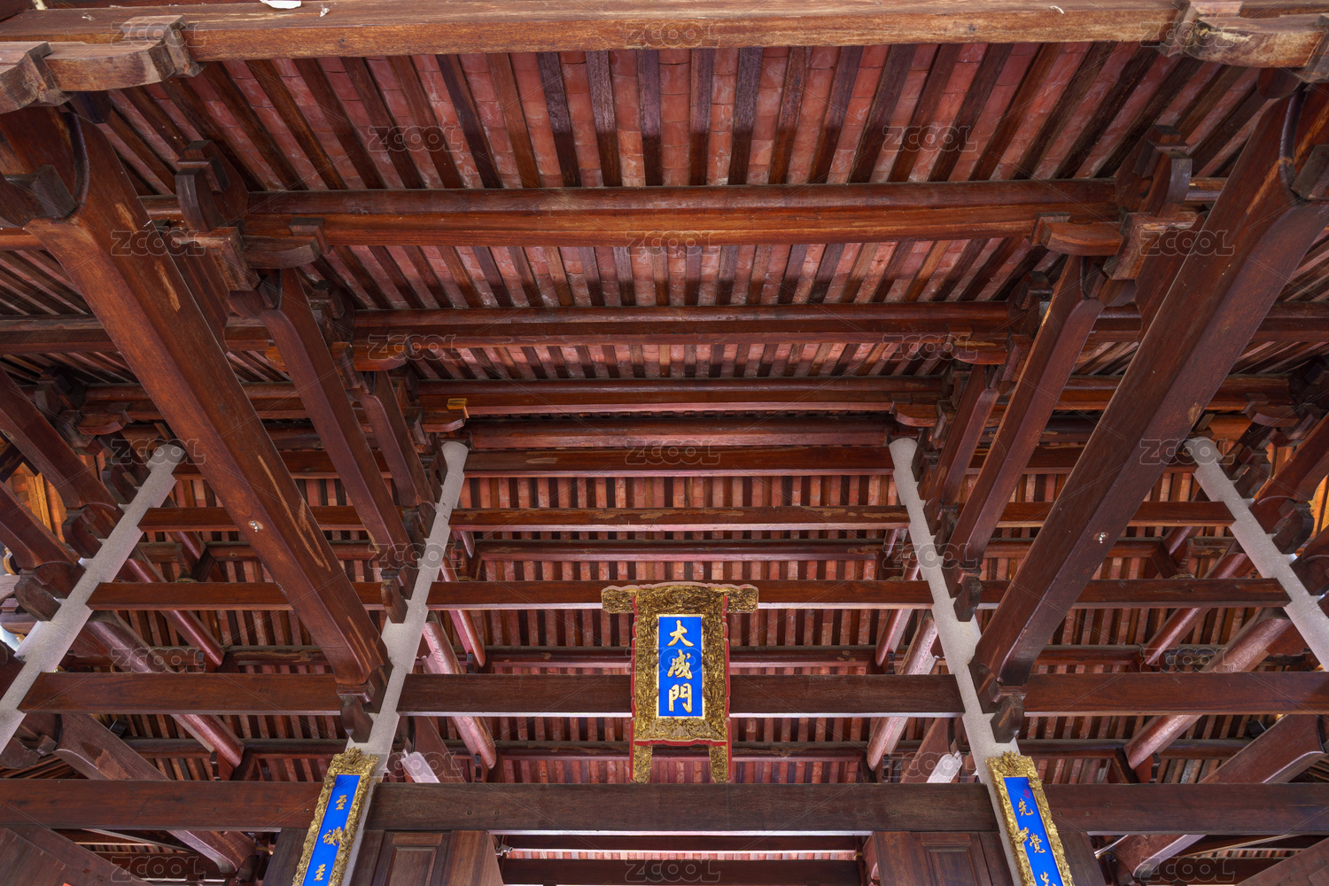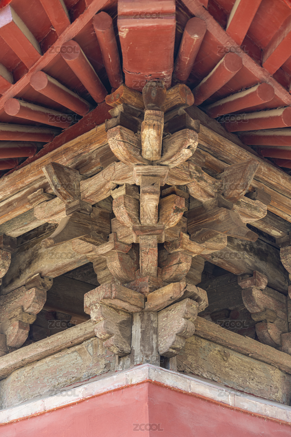 山东曲阜孔庙内精美的斗拱结构