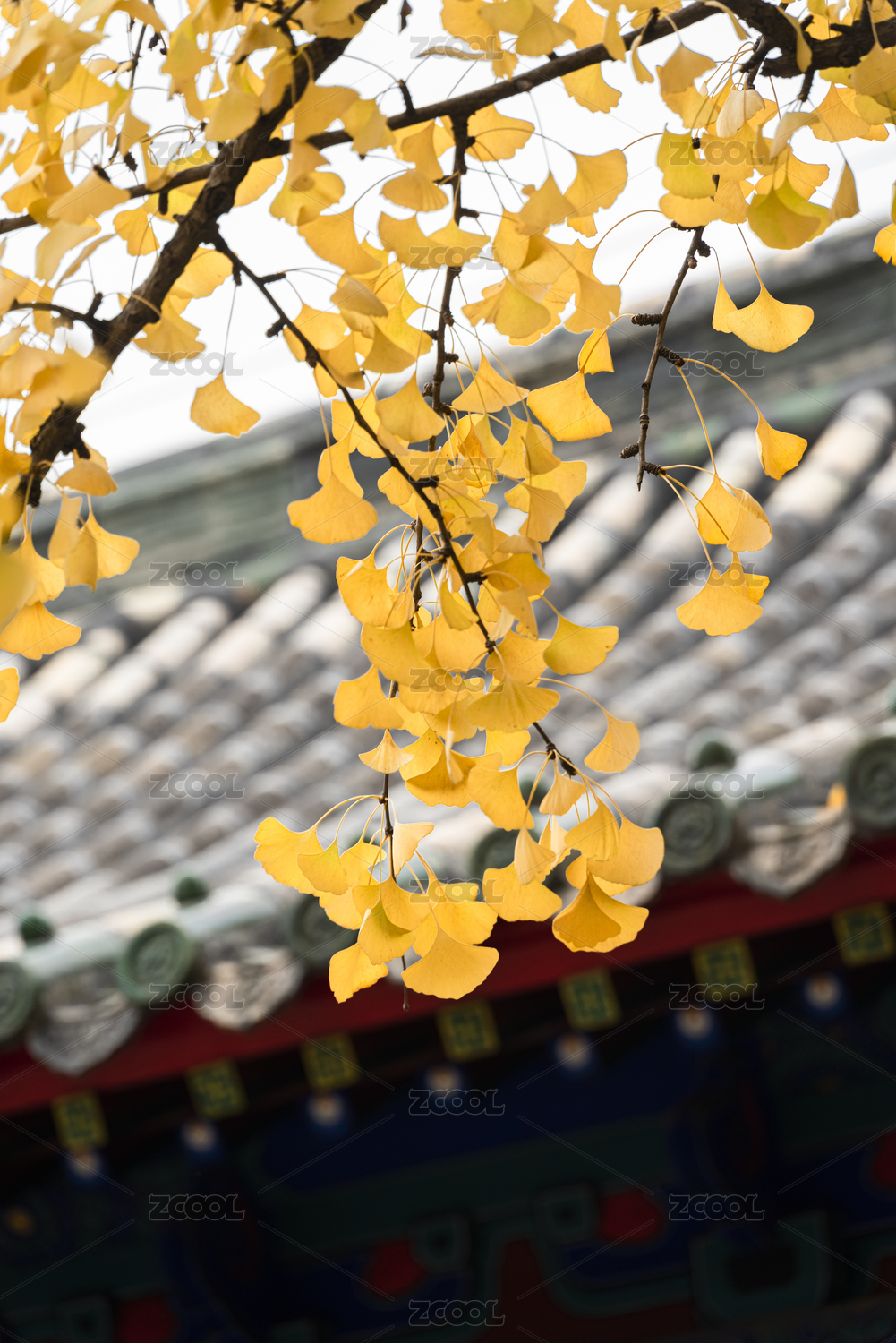 山东曲阜孔庙里金黄色的银杏树