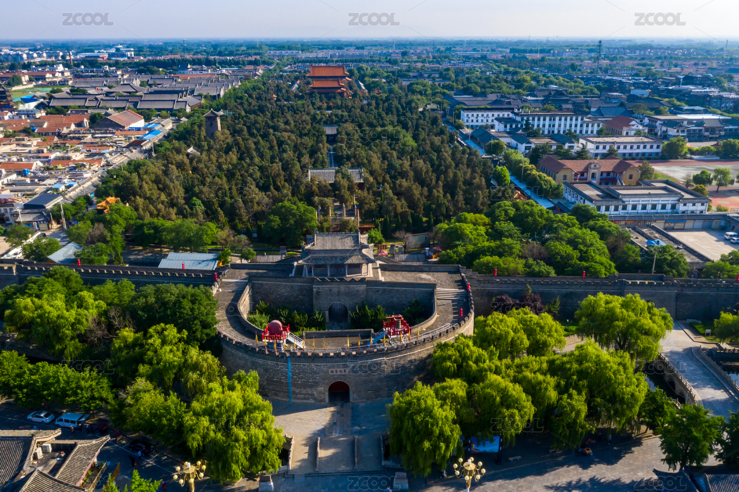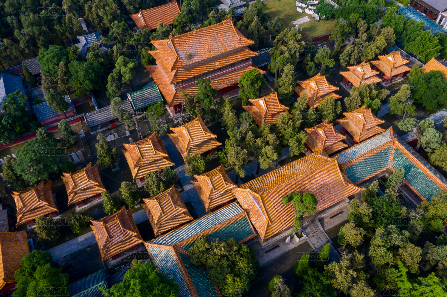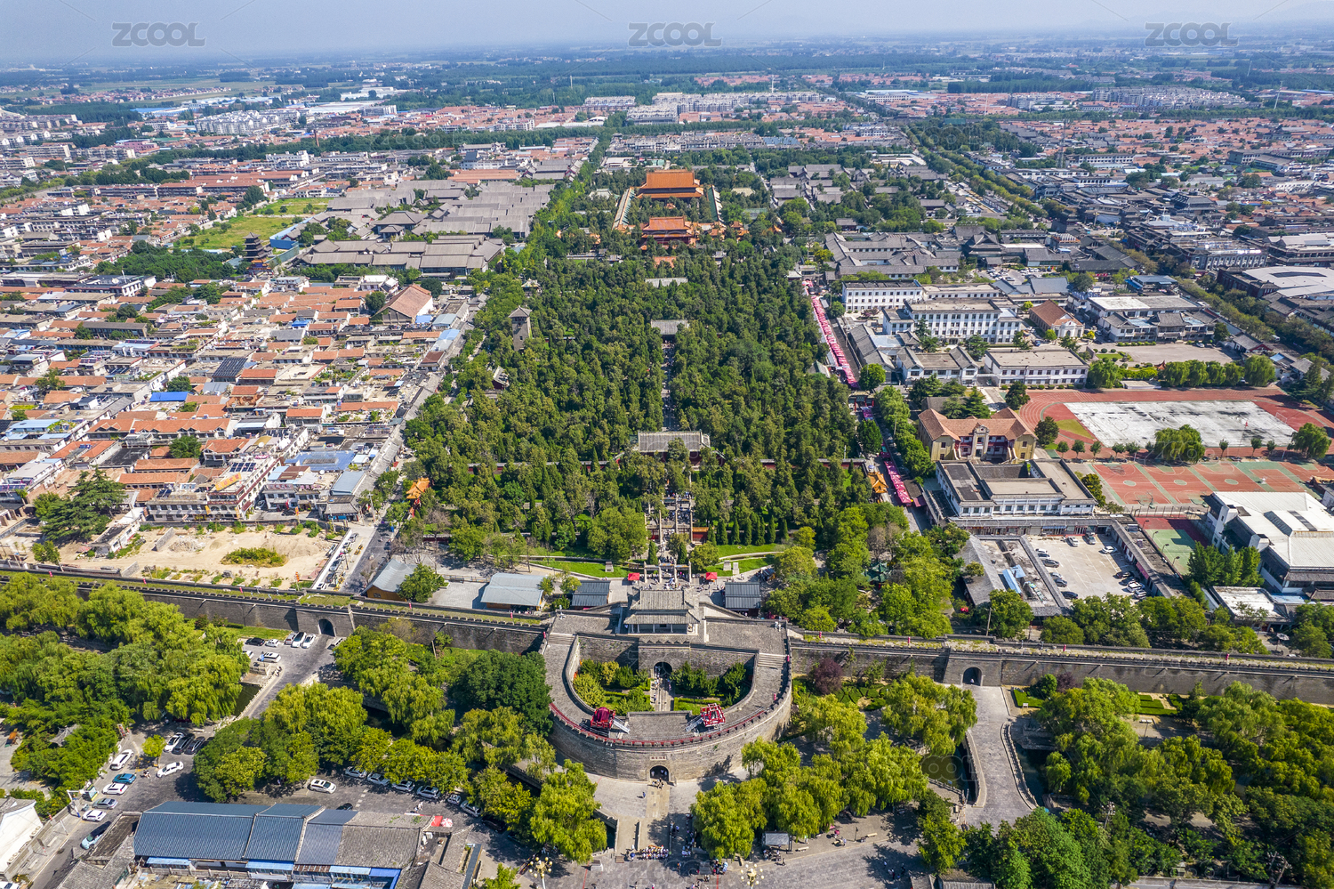 中国山东省济宁市曲阜市曲阜孔庙航拍