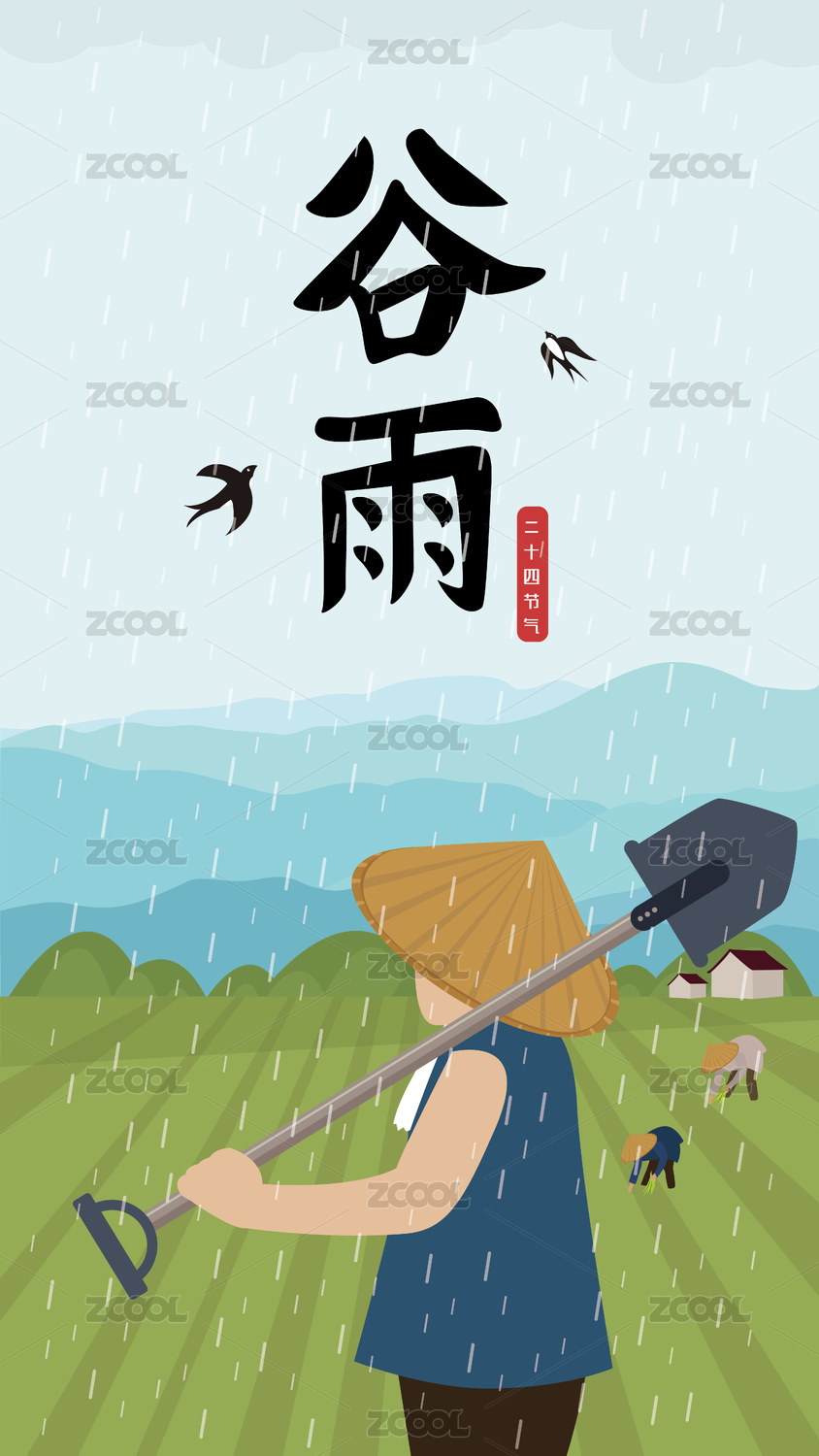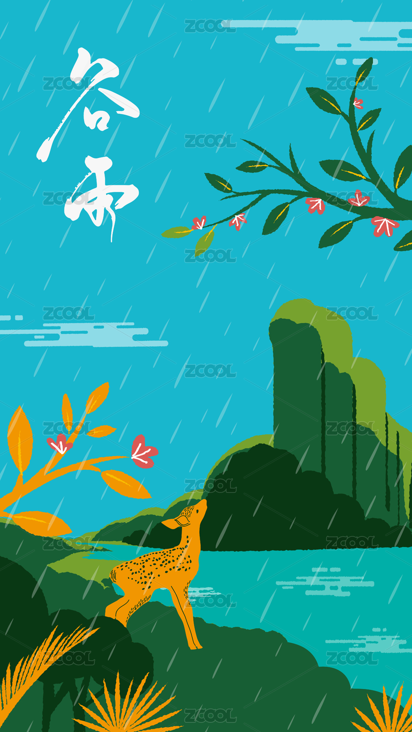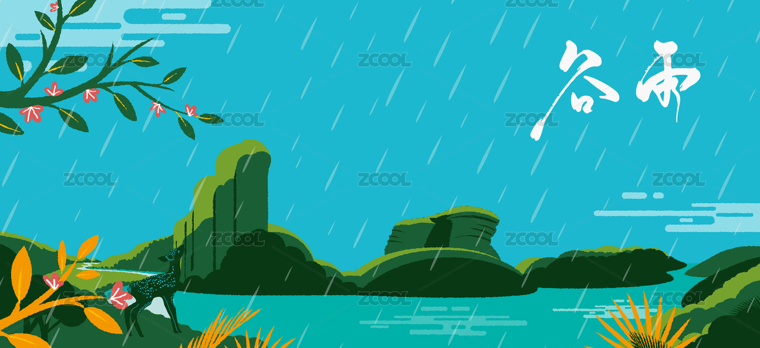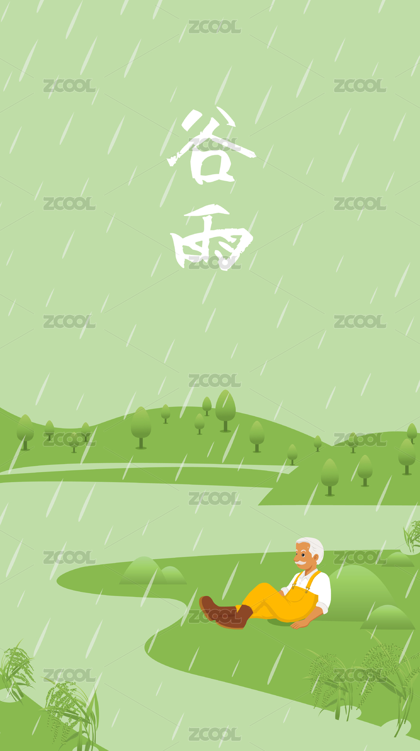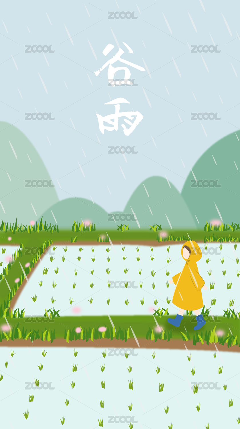 手绘矢量谷雨传统二十四节气插画海报