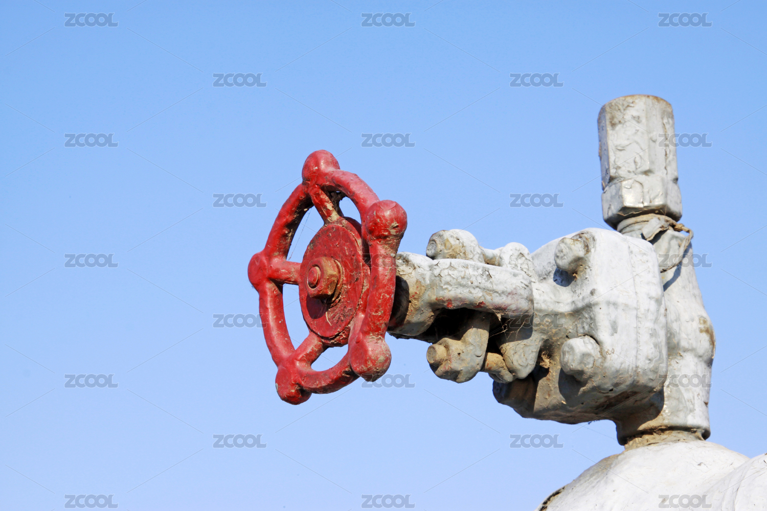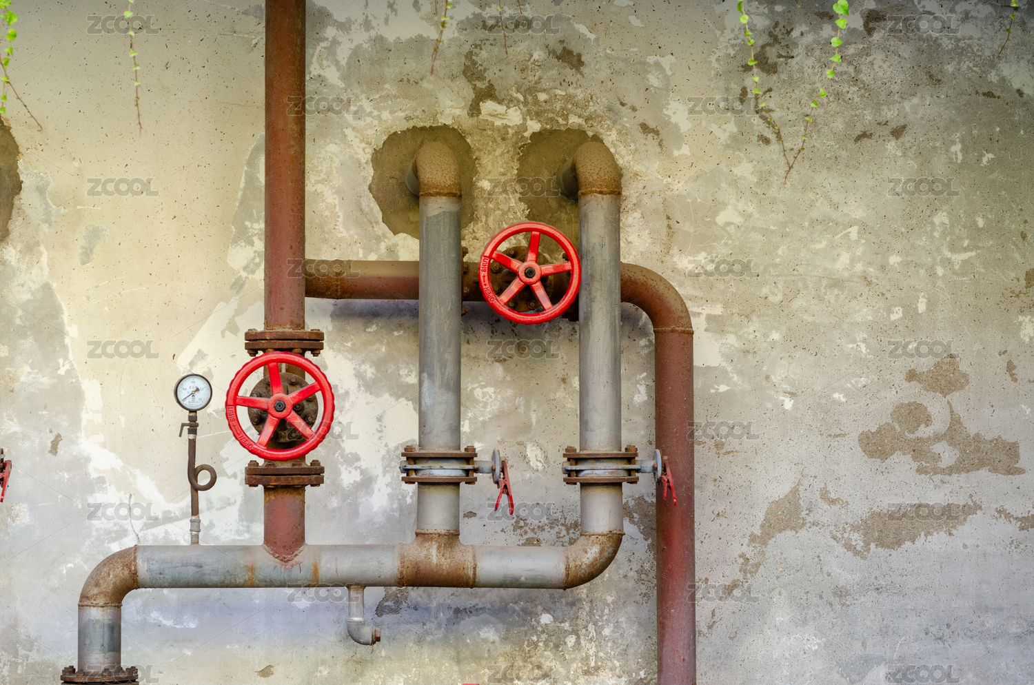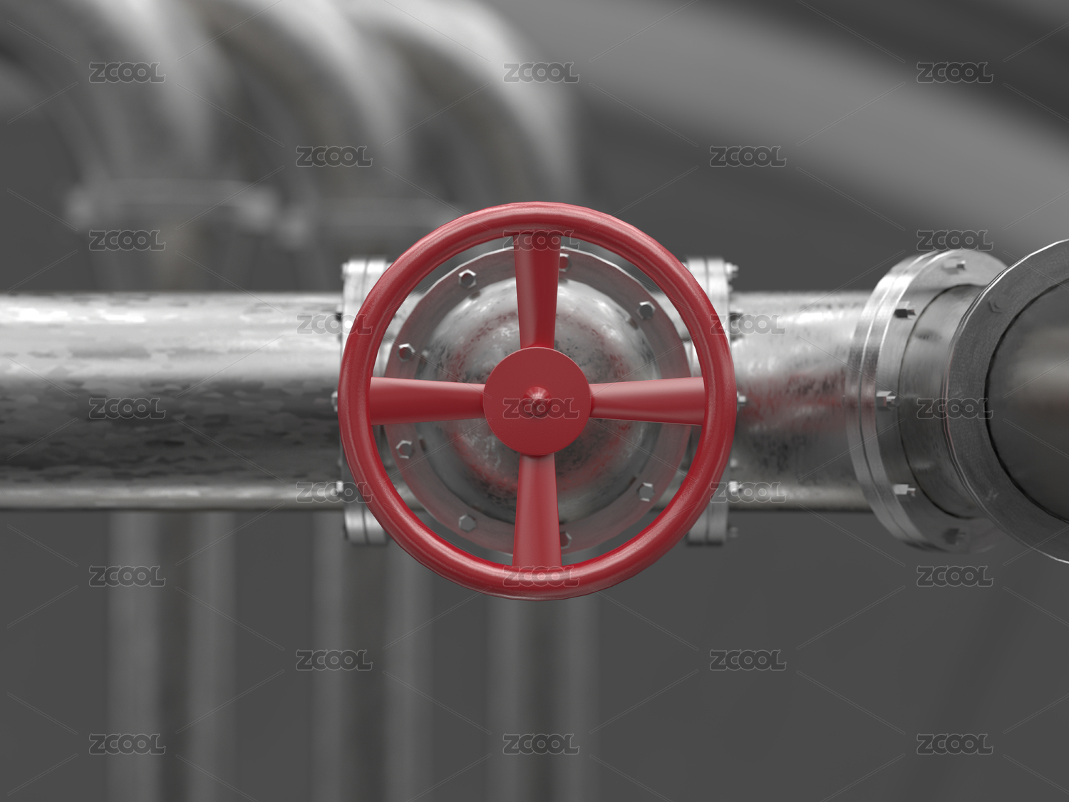 红色阀门与金属管道特写