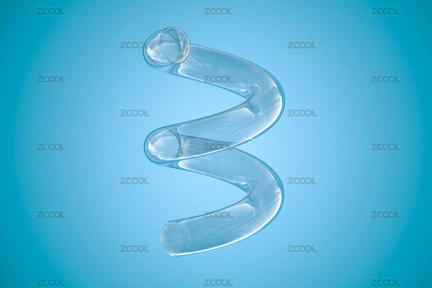 透明的螺旋管道与蓝色背景 3D渲染