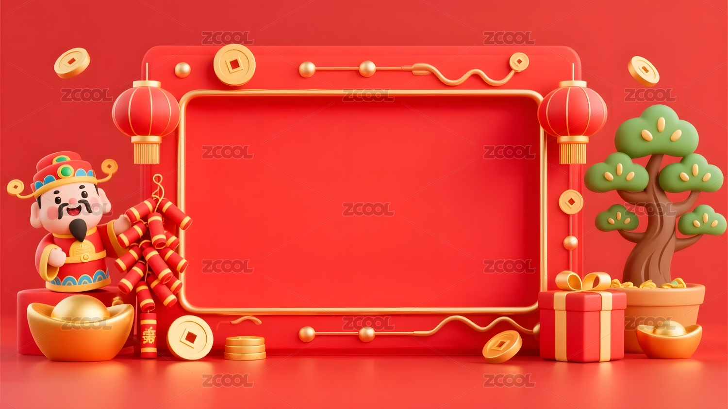 新年卡通立体喜庆主标题框设计