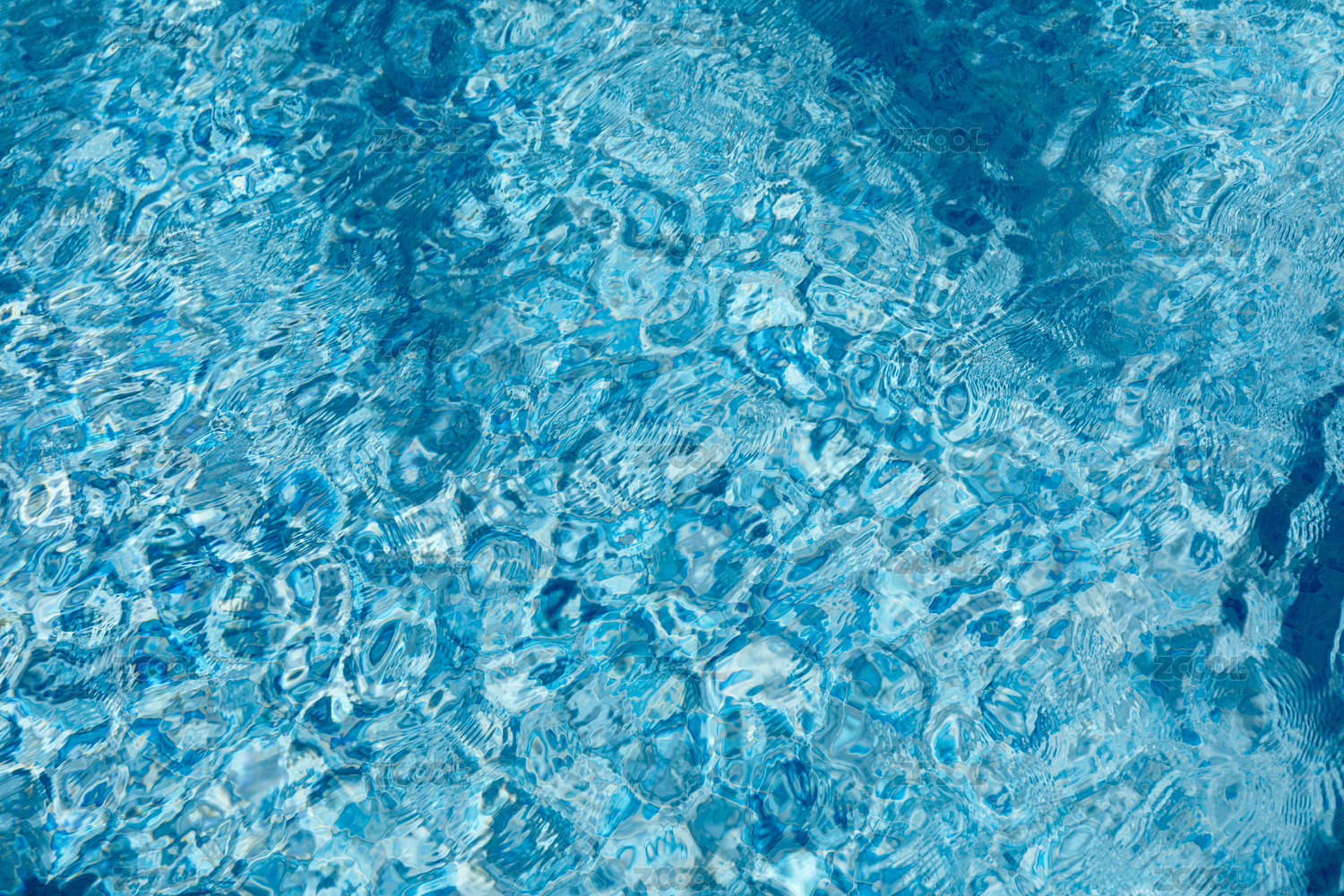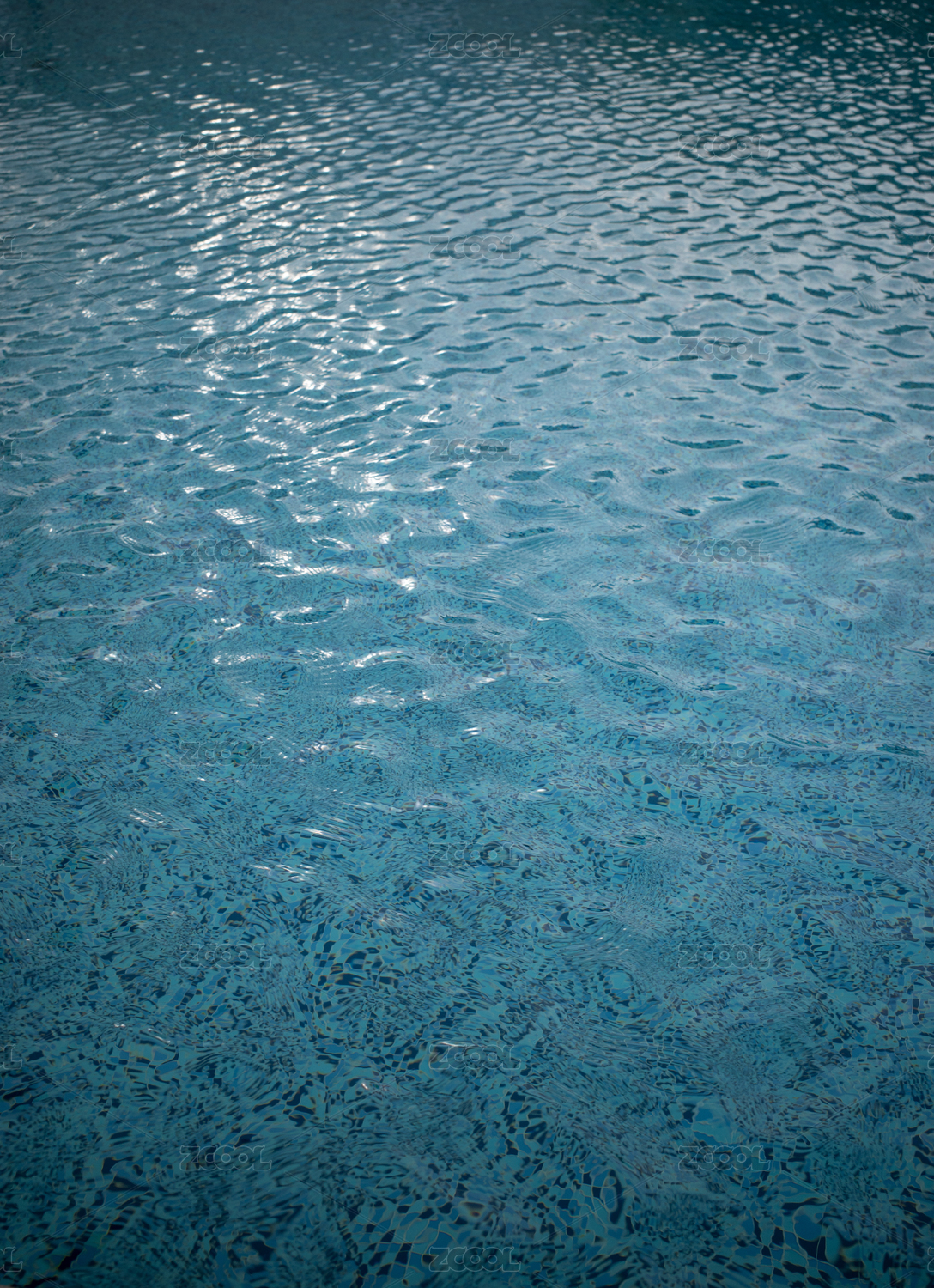 夏季开放的泳池楼梯扶手和蓝色的池水