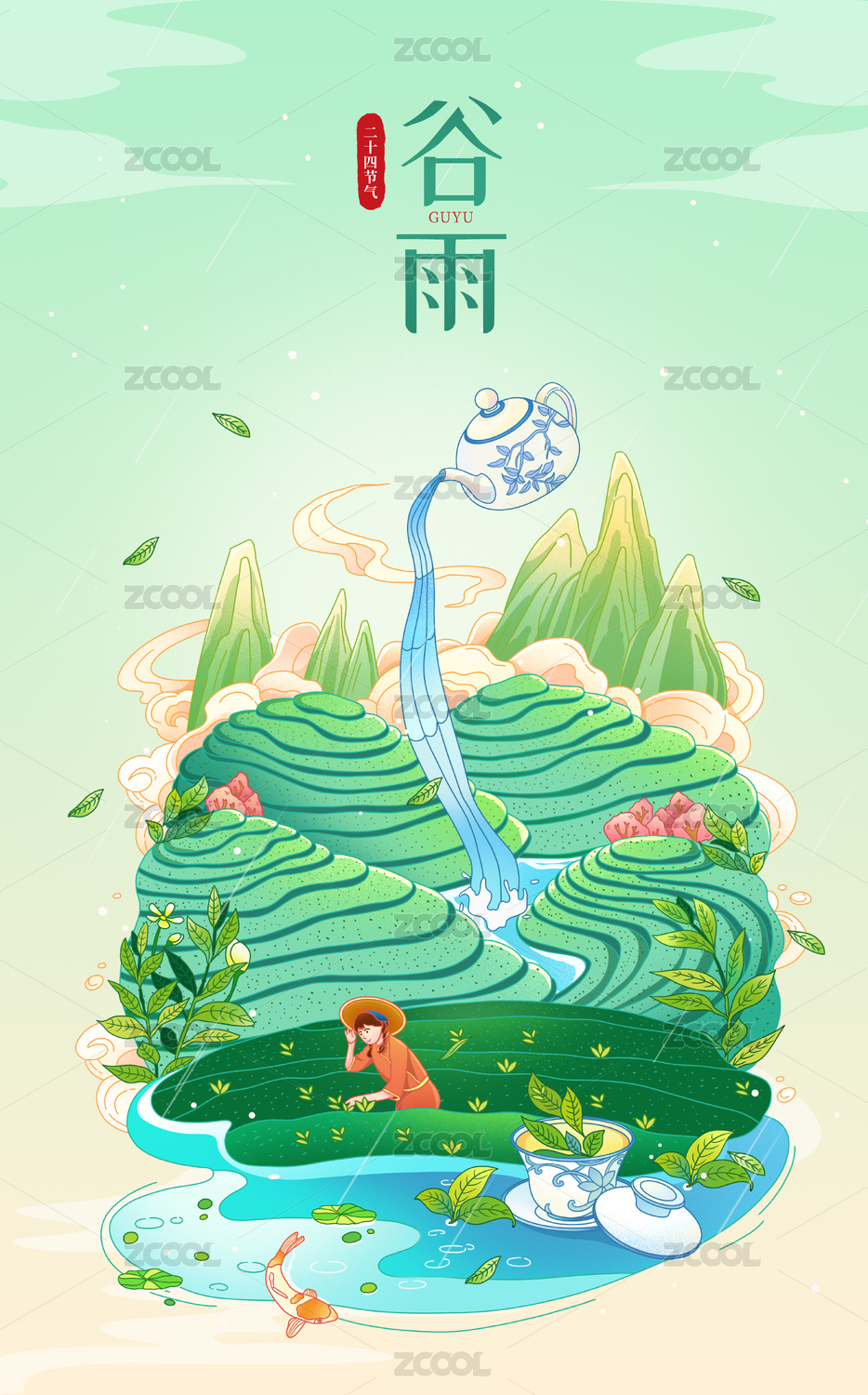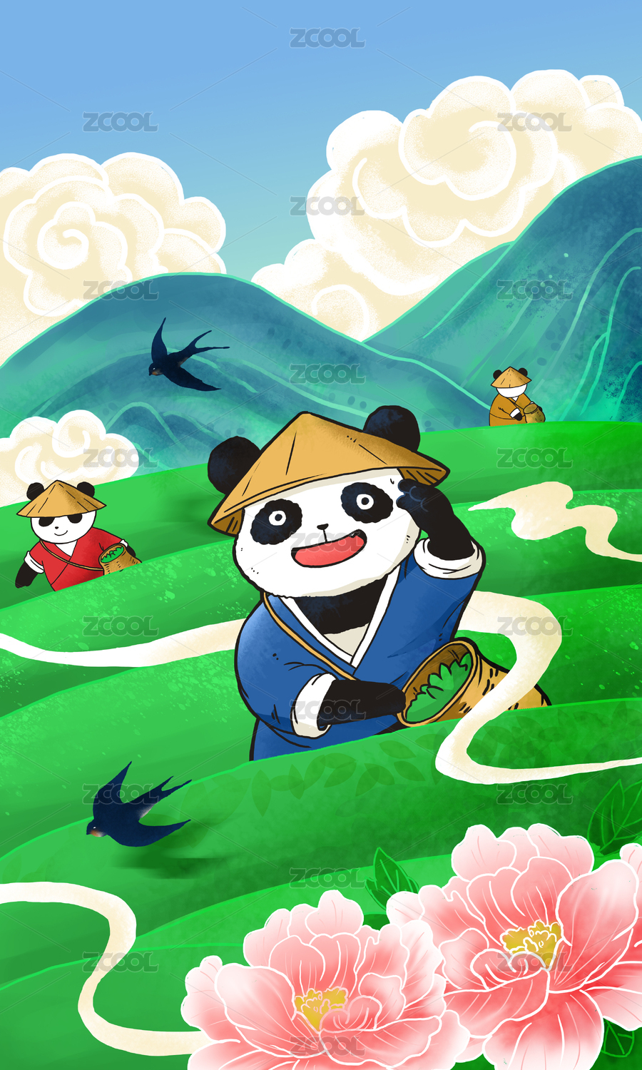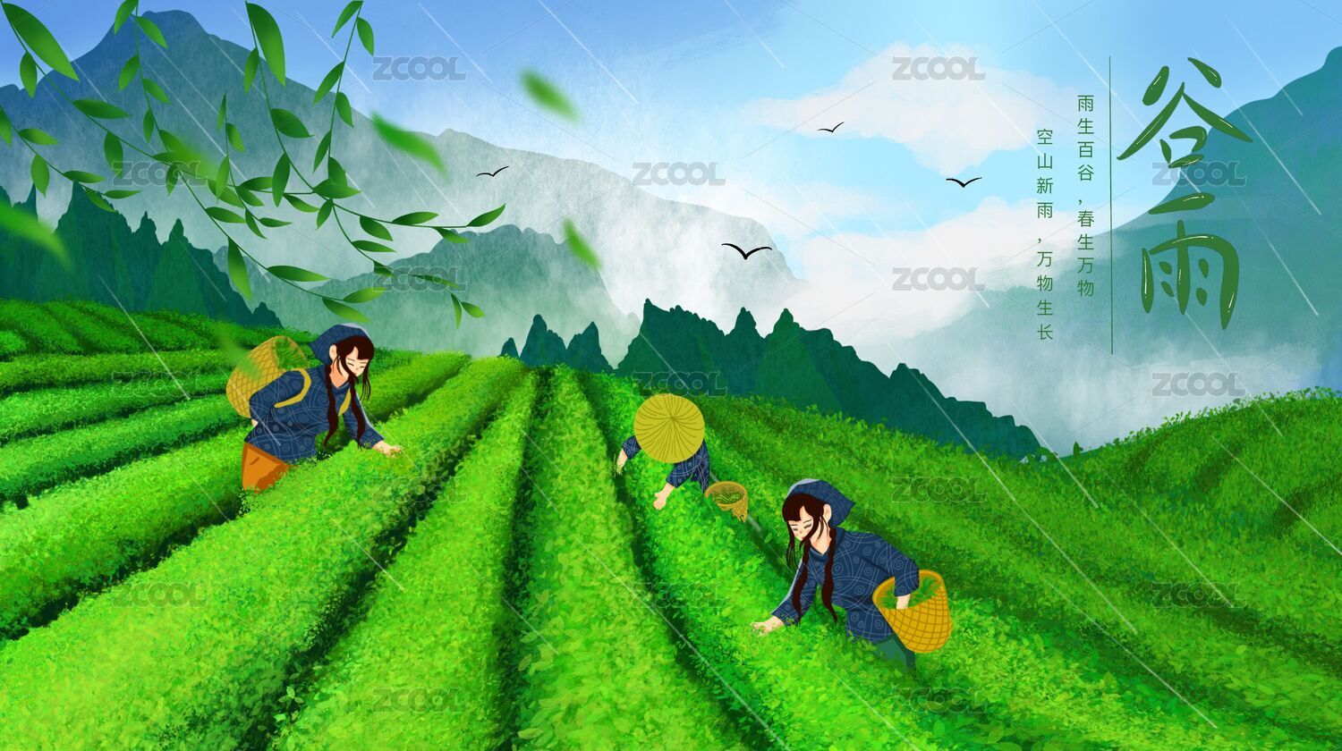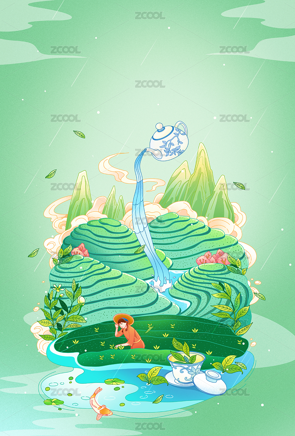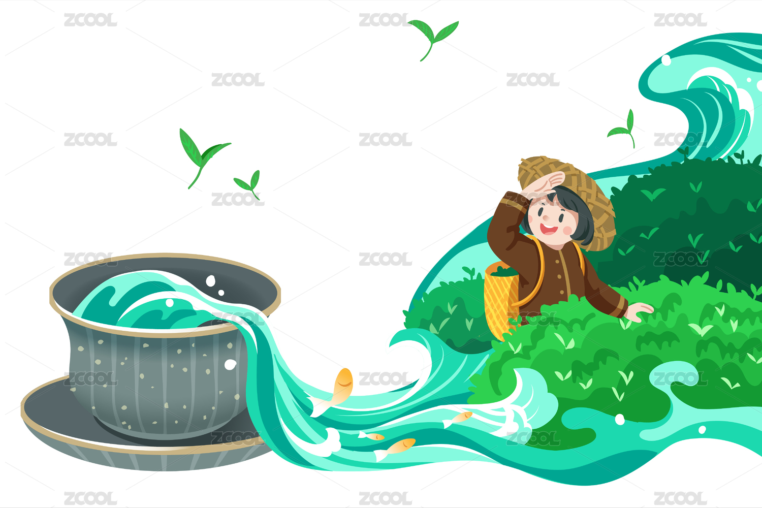 清明节采茶国潮插画中国风茶叶茶园风景海报