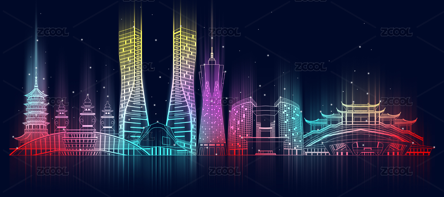 线条夜景炫彩浙江杭州插画
