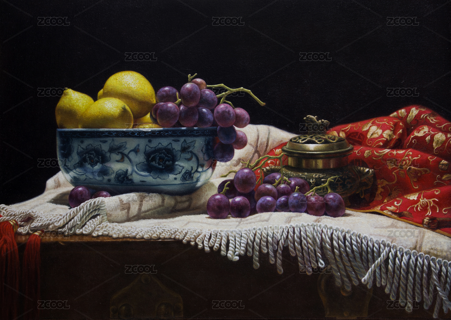 水果静物的油画