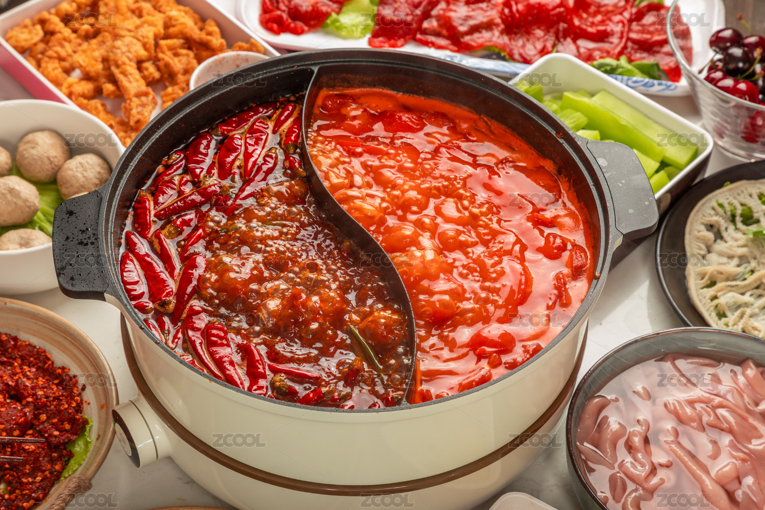 麻辣火锅拼番茄锅