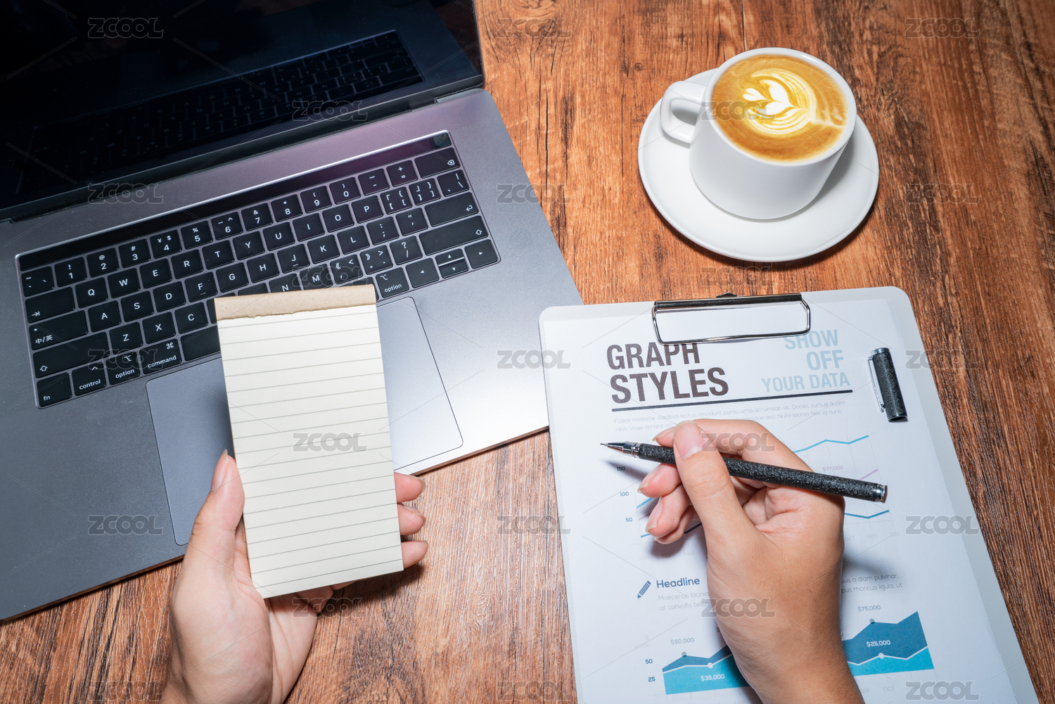 商务人士第一人称书桌桌面使用电脑办公工作放松喝咖啡轻松概念
