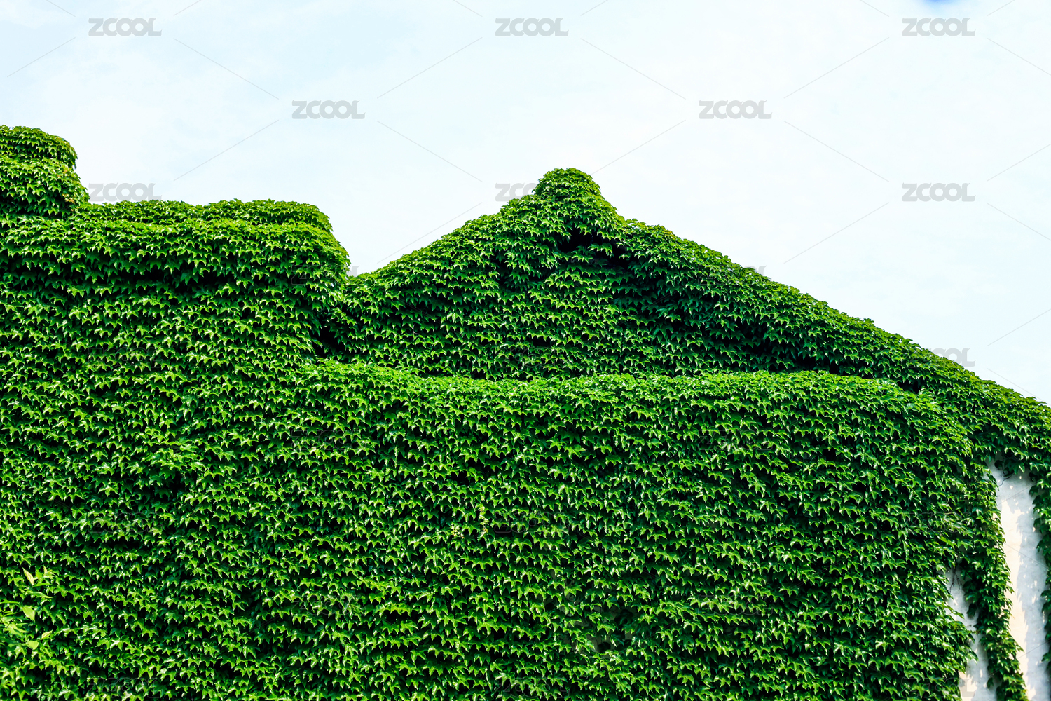 中国青岛街道充满生命力的爬满了整座墙的爬山虎