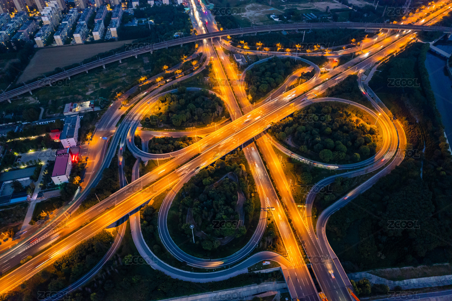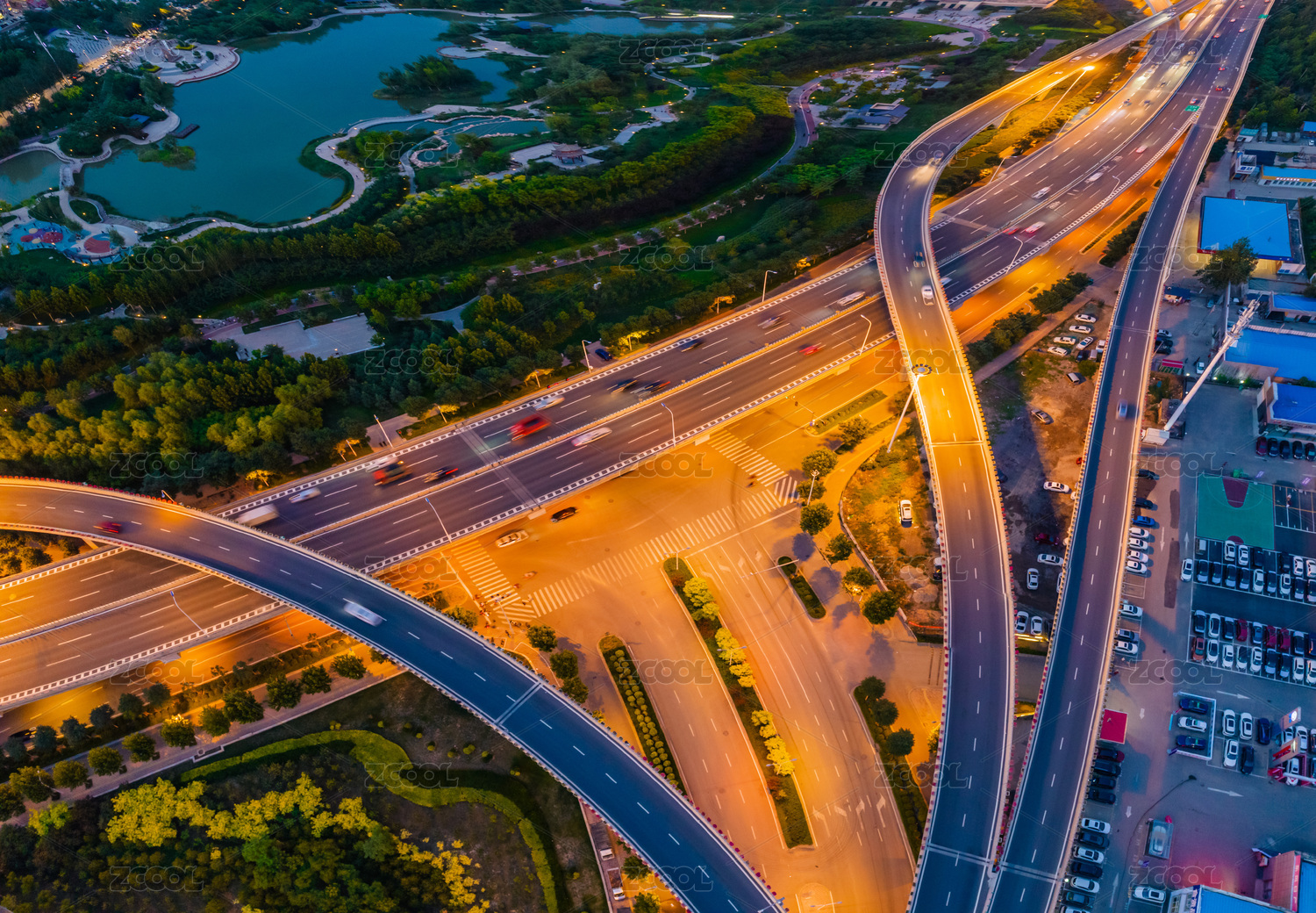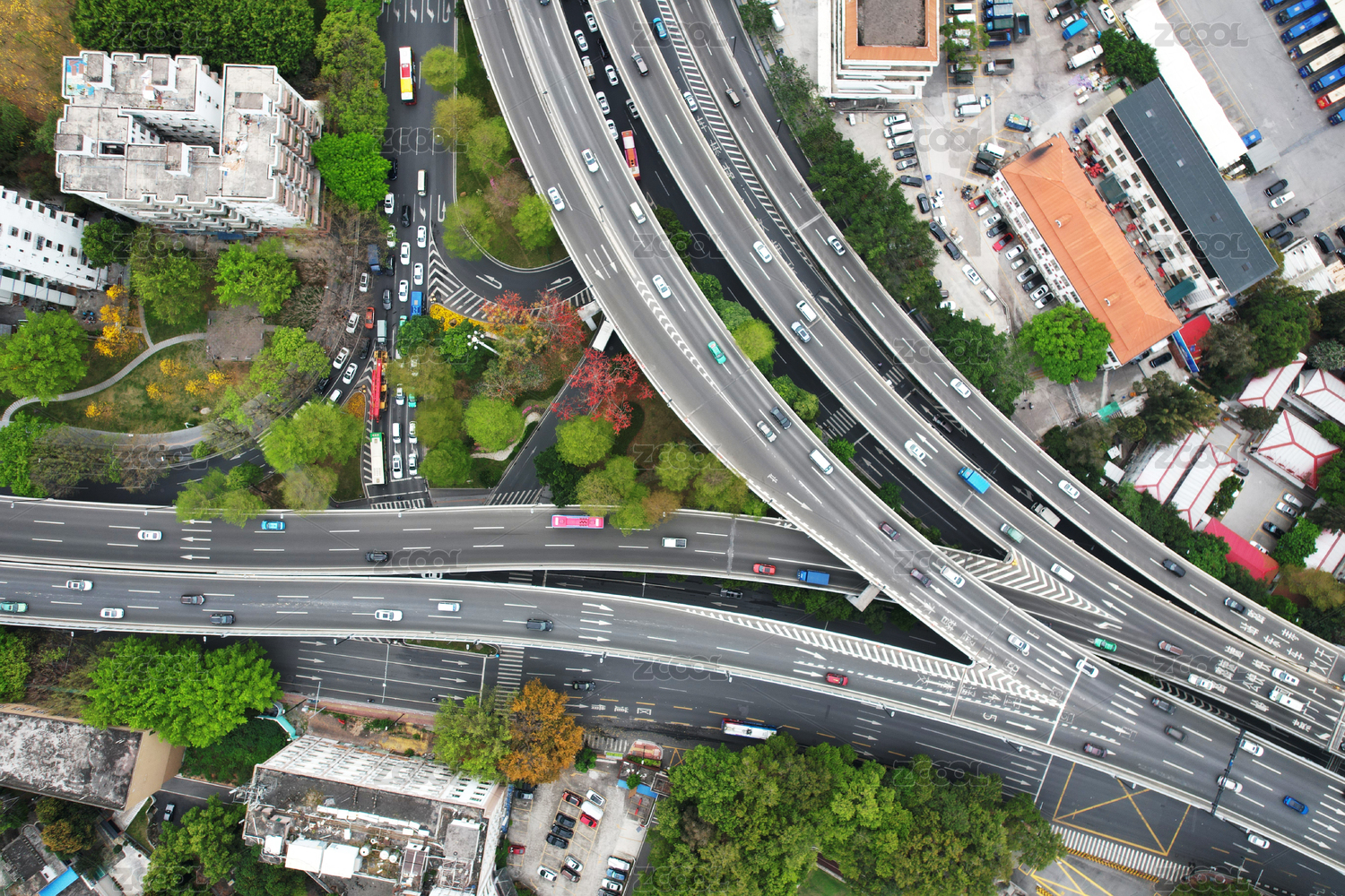 航拍道路、高架桥