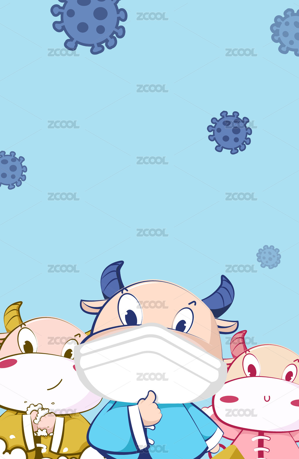 防疫小牛戴口罩勤洗手少出门抗病毒