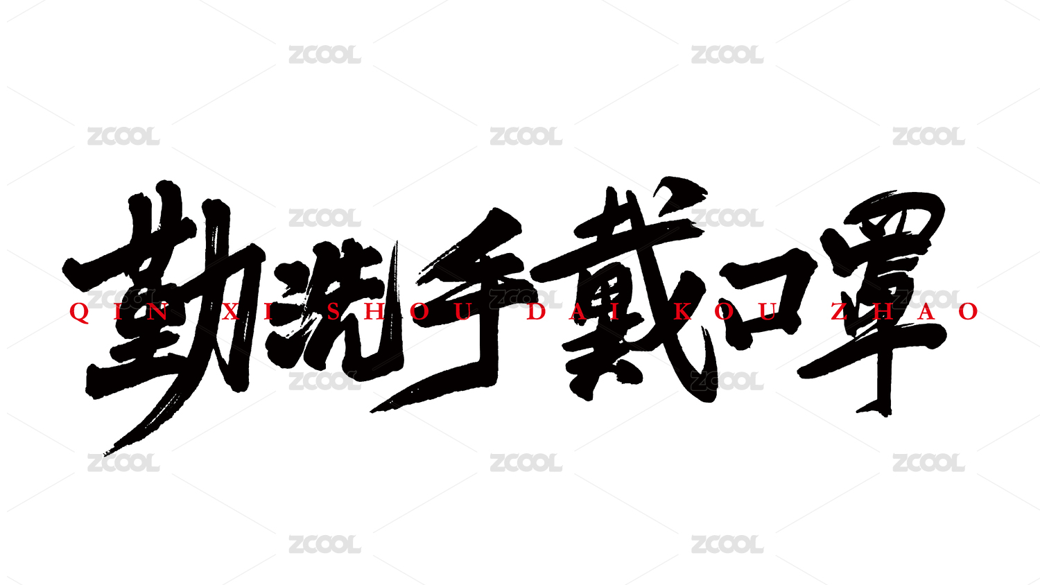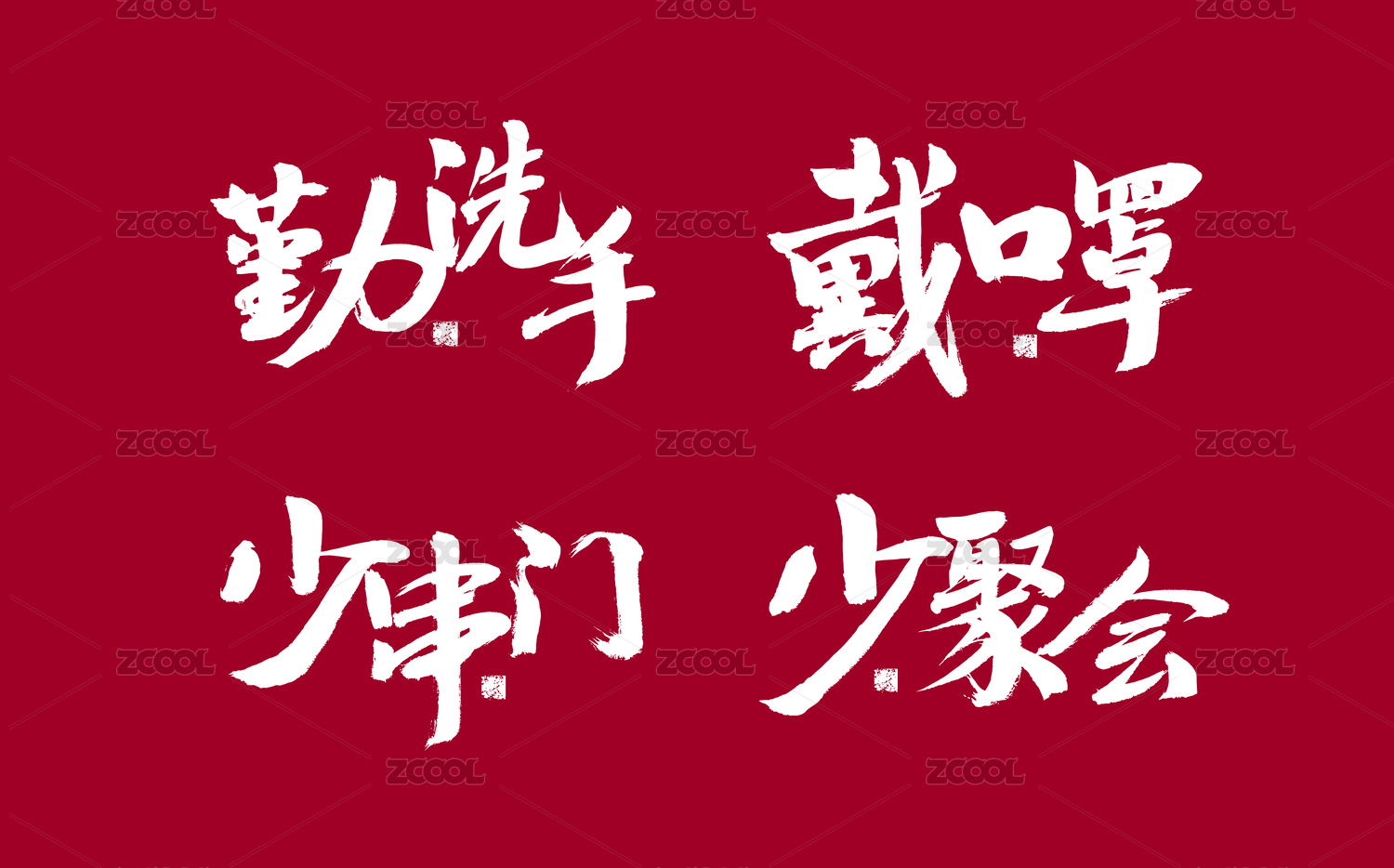勤洗手戴口罩,少串门少聚会,手写书法字体