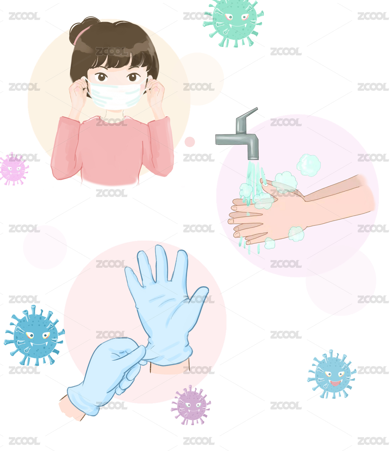 防疫插画小知识 勤洗手讲卫生 勤开窗通风