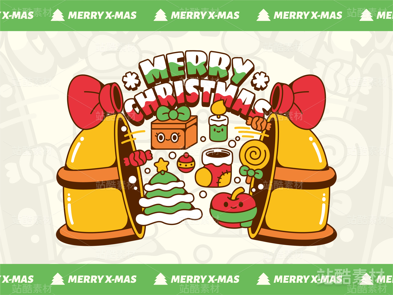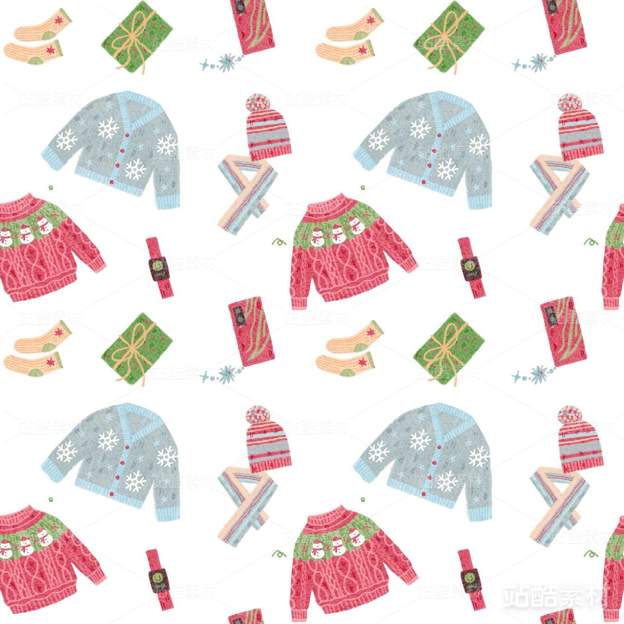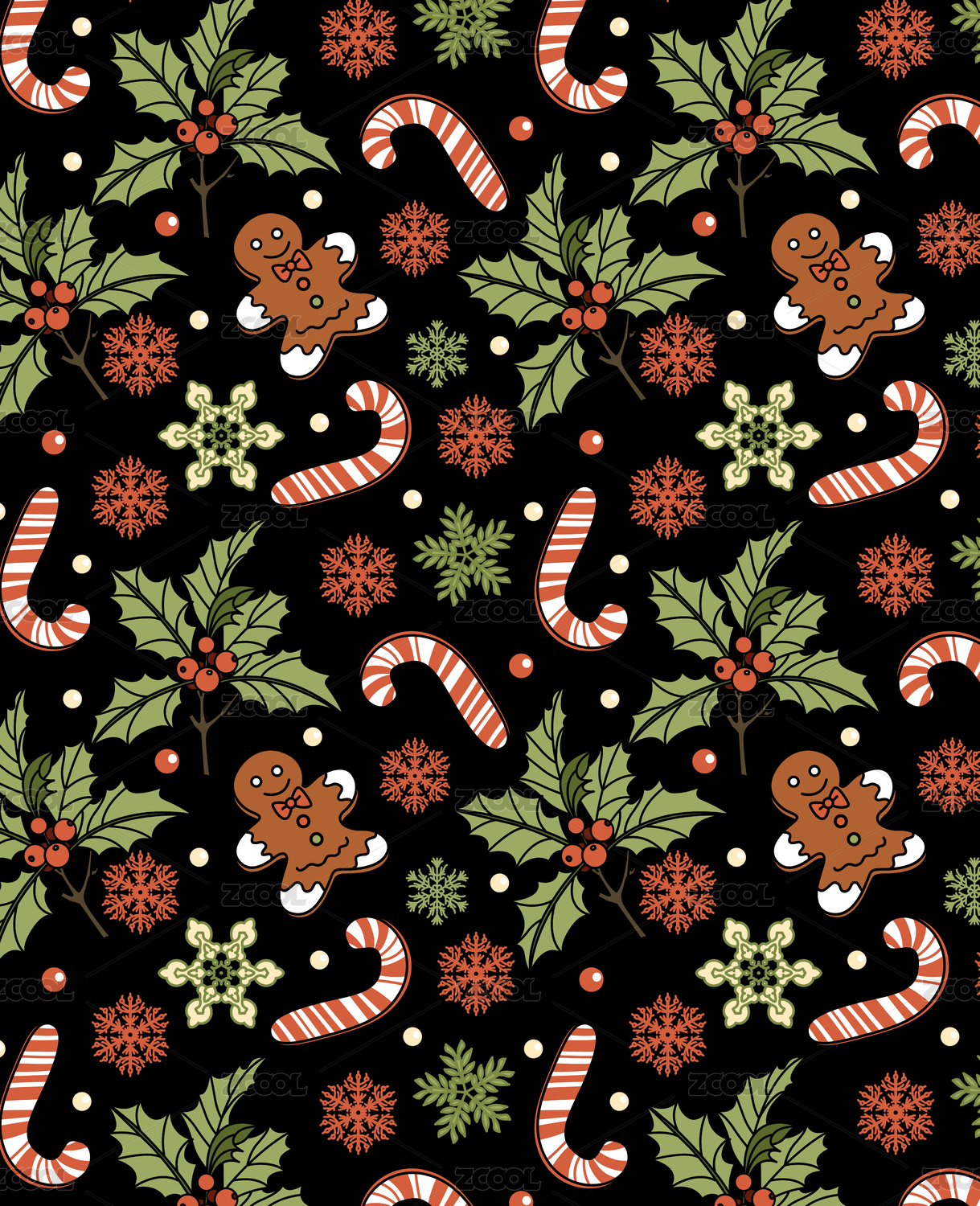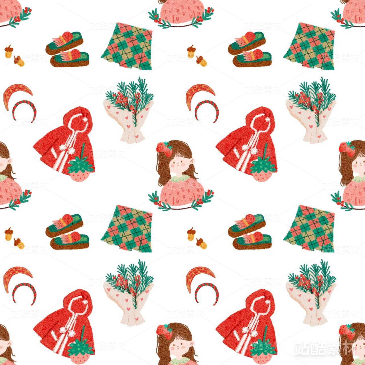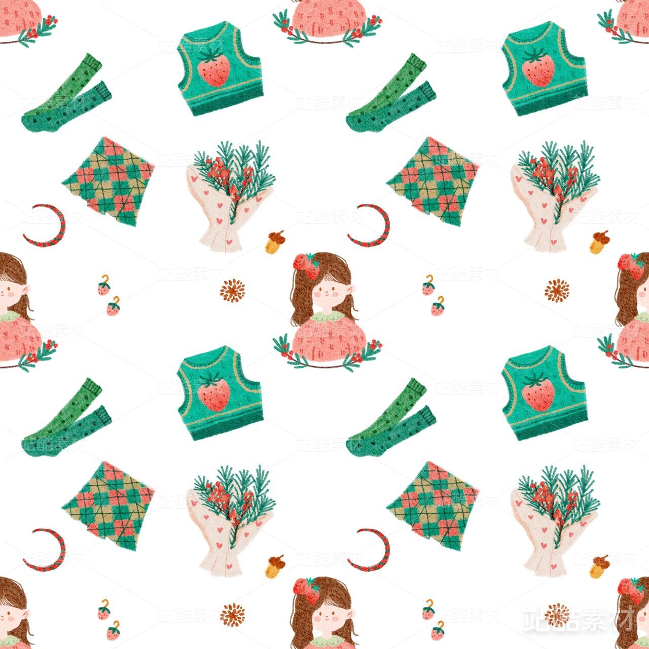 圣诞平安夜冬青红果清新可爱元素无缝图案