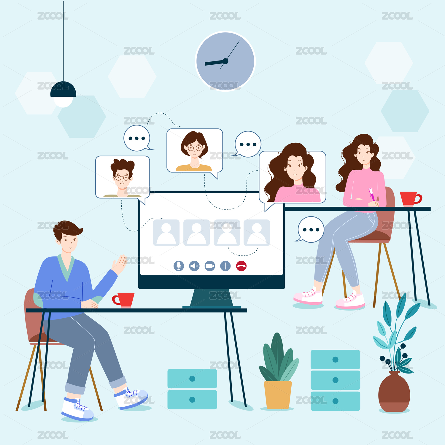商务合作线上会议签到办公矢量插画