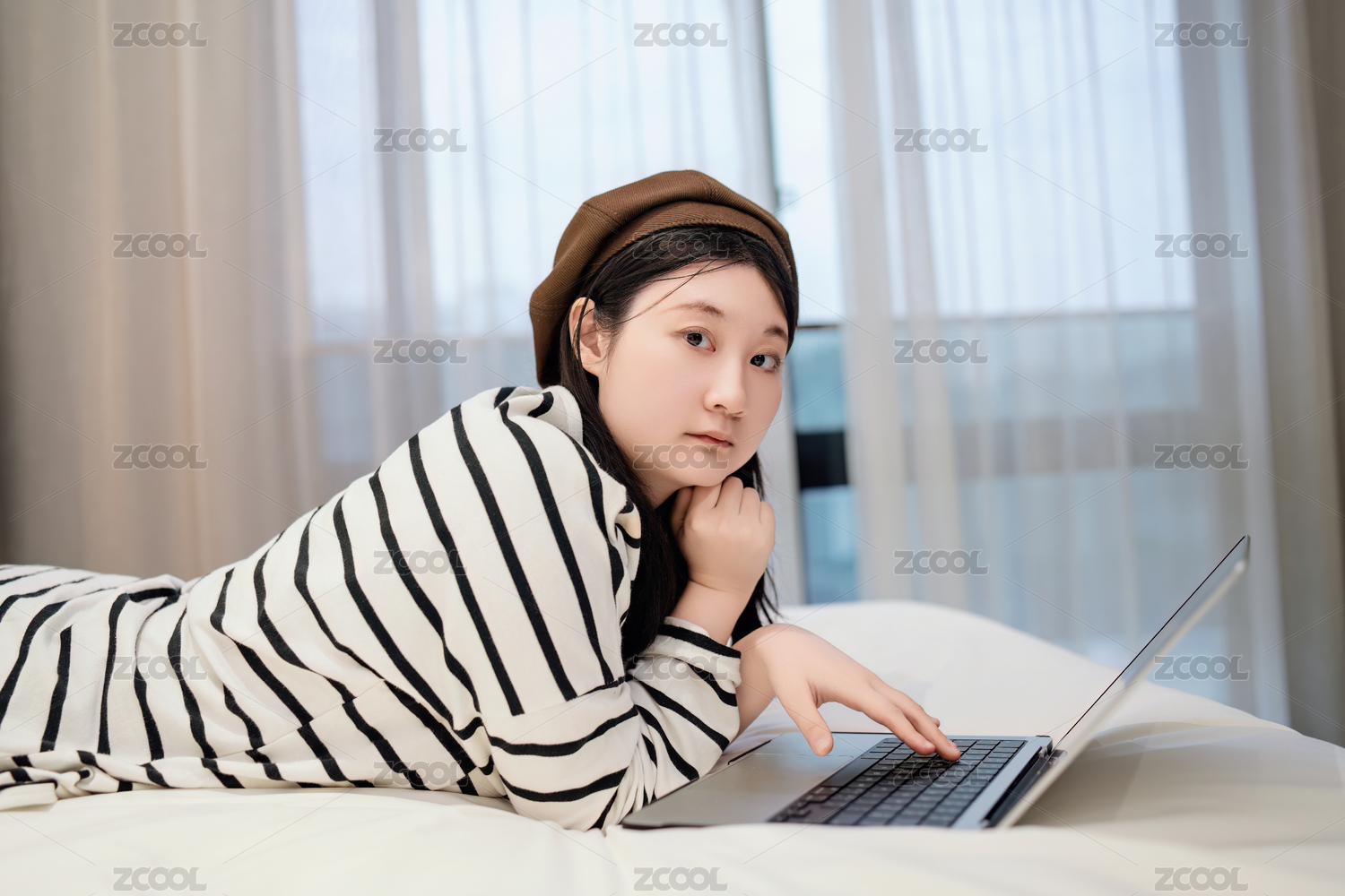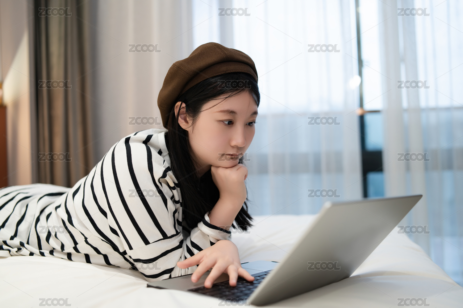 年轻女性居家办公/远程教育学习