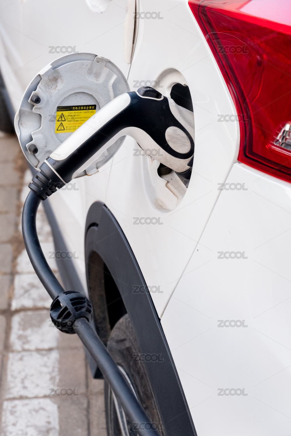 一辆正在充电的新能源汽车充电插头